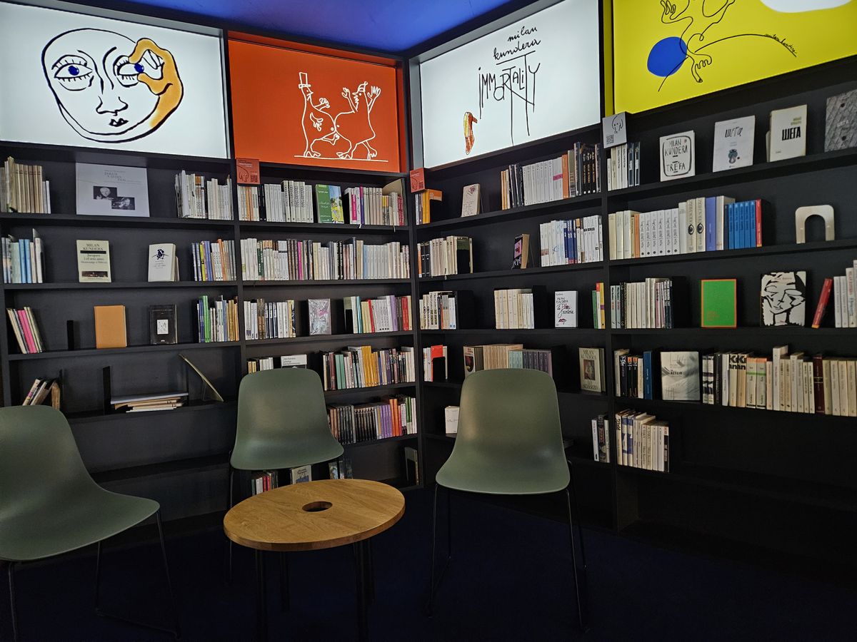 Jsou tu ale k prolistování i opravdové unikáty - třeba dvoudílné obří vydání slavného středověkého románu Gargantua a Pantagruel od francouzského spisovatele François Rabelaise, ke kterému v roce 2019 Kundera napsal vlastní předmluvu.
