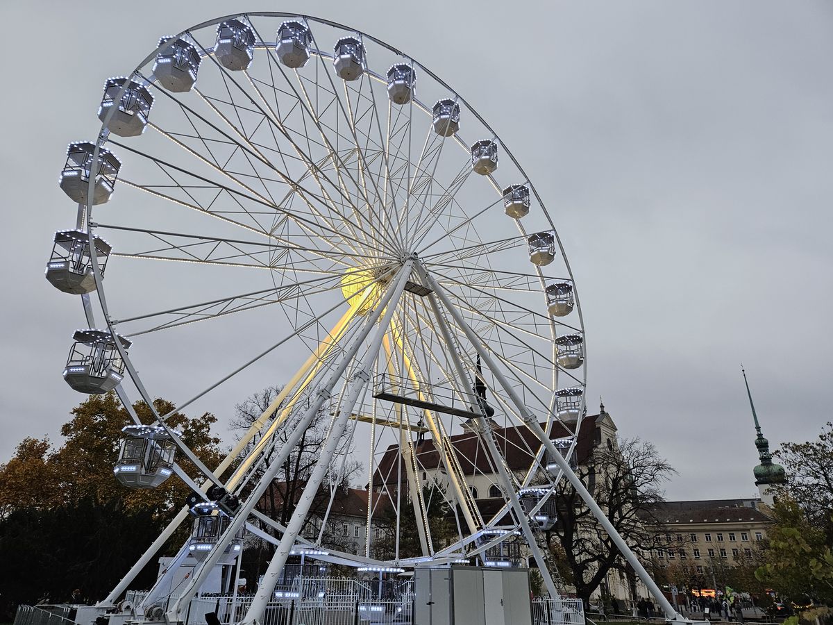 Neodmyslitelnou stálicí Brněnských vánoc je obří vyhlídkové kolo. To našlo stabilní místo na Moravském náměstí i po jeho rozsáhlé revitalizaci, která se nedávno dostala do finále desátého ročníku České ceny za architekturu, ale především vrátila do prostoru, jímž se dřív jen procházelo, celoročně život.