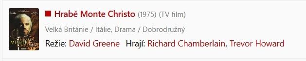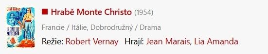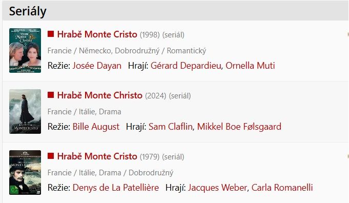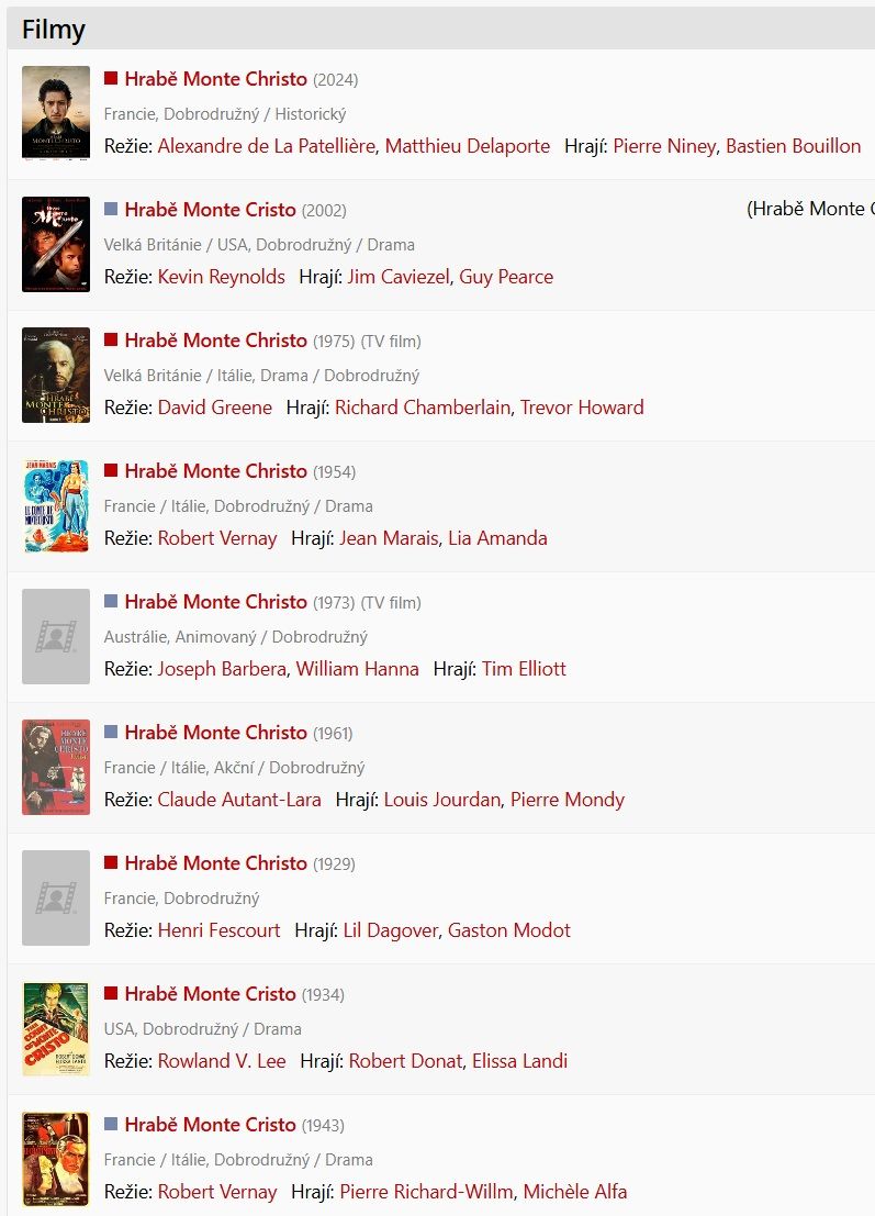 Mám partnerku, která je posedlá filmy o pomstách všeho druhu. V důmyslné i v brutální formě, přímočarými i rafinovanými. A Monte Christo je prý takovým praotcem všech těchto děl. A je prý tedy nutné, abych se na jeho osudy taky podíval. Ale na kterého, když existuje tolik verzí? Zde se račte pokochat množstvím filmových verzí (a to jen těch, které nesou na ČSFD přímo název Hrabě Monte Christo v češtině):