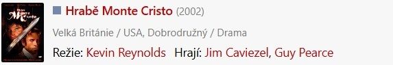 Jak už se člověk do Monte Christa jednou ponoří… Zkrátka a dobře, spatřil jsem náhled na verzi 2002, spatřil jsem i krátkou upoutávku a vše nasvědčovalo tomu, že není čeho se bát, neboť wokeizace filmového průmyslu sice už tehdy nebyla úplně v plenách, ale do plné síly měla ještě daleko. A tento film vypadal, že je jí nezpoznamenán. Zato však bylo od počátku jasné, že se zde naplňuje legendární kampaň „Přečtěte si to dřív než Hollywood“. S ohledem na to, že jsem knihu nečetl, bych si ji dovolil parafrázovat do „Podívejte se na ten film, než ho natočí znovu.“ Dantes a Mondego jsou nejlepší přátelé, kteří spolu slouží na obchodní lodi. Tedy, aspoň Dantes si myslí, že jsou nejlepší přátelé. Mondego je totiž záporák skrz naskrz, takový, jaké známe jen z telenovel a podobně duchaplných děl. Není zlý nenápadně, protože chce něco získat, on je zlý naprosto okázale, aby to všichni viděli a nikdo o tom neměl šanci ani na chvíli pochybovat. Také Danglairs není nějaký účetní či ouřada v nazdobeném obleku a v paruce, nýbrž důstojník na lodi. Špinavý, smradlavý, s pohledem, jenž zabíjí, a se stejně čistokrevným profilem zla jako Mondego. Což v sobě neslo určitou nevýhodu. Nedokázal jsem si představit, jak z něho udělají posléze šlechtice. To jsem ještě nevěděl, že zde na to půjdou tvůrci úplně jinak. V duchu naprosto přímočaré expozice se ani Willefort s Dantesem nijak nepáral, takže žádné dlouhé předstírání, ale znovu víceméně bezprostřední zlo. Ještě před samotným přesunem do pevnosti If jsme se dočkali i akčních scén a okázalých šermířských soubojů Bylo patrné, že tady se na sofistikované zápletky a mnohoznačné konverzace hrát nebude. O to překvapivější bylo, že pobytu ve vězení byl věnován velkolepý prostor, který překonává i seriálové verze. A očekávání diváka směrem k vyřizování účtu začínají radikálně stoupat, i přesto, že abbé Faria zde nebyl Dantesovi jen učitelem duchovním, ale též tělesným, takže v duchu akčních filmů či asijských kung fu mlátiček učil jako starý mistr Edmonda šermovat a přidal i pár účinných chvatů. Jak čas ubíhal, začínal jsem mít dojem, že na závěrečné zúčtování bude mít tento Monte Christo dost málo času. S tím se ovšem tvůrci vypořádali po svém a místo vymýšlení spletitých intrik to vyřešili bez dlouhých řečí a předstírání. Dantes se prostě pomstí tak, že padouchy propíchne či jinak okázalým způsobem sprovodí ze světa. A tak místo pečlivých plánů přišly na řadu pěsti, meče a kaluže krve. S Dumasem to nic společného nemělo, spíše jsem měl pocit, že se ocitám někde v Andělské tváři. Fanouškům Dumase by se z toho asi srolovaly ponožky, ale já jsem se celkem pobavil, jak lze takovou látku také pojmout, chcete-li jejím zpracováním uspokojit soudobé filmové trendy.