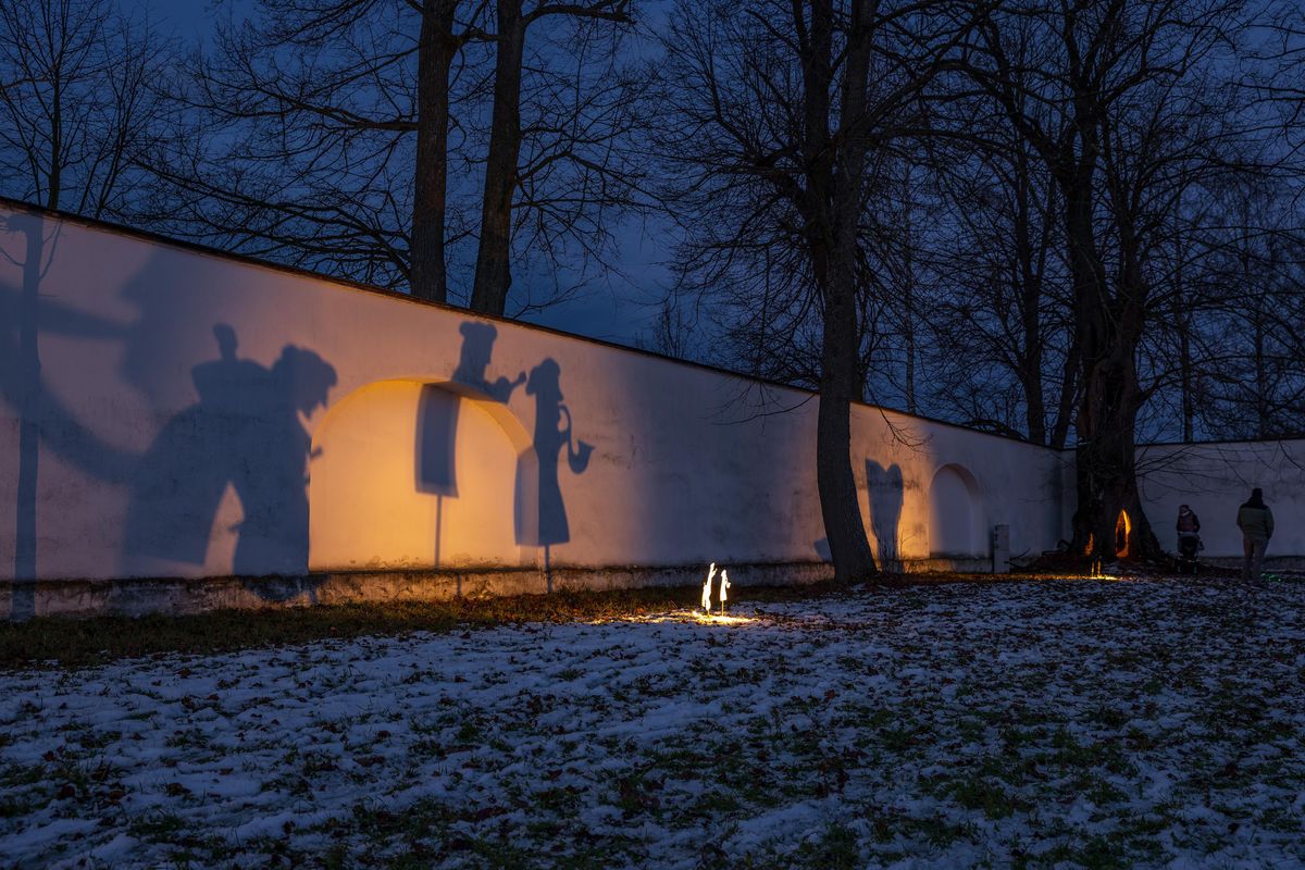 Za světelnými instalacemi stojí animátor a scénograf Zdeněk Durdil společně s audiovizuálním tvůrcem Jakubem Demlem. Jejich díla najdete rozmístěná na třetím a čtvrtém zámeckém nádvoří, v jablečném sadu i v historických Santiniho konírnách.