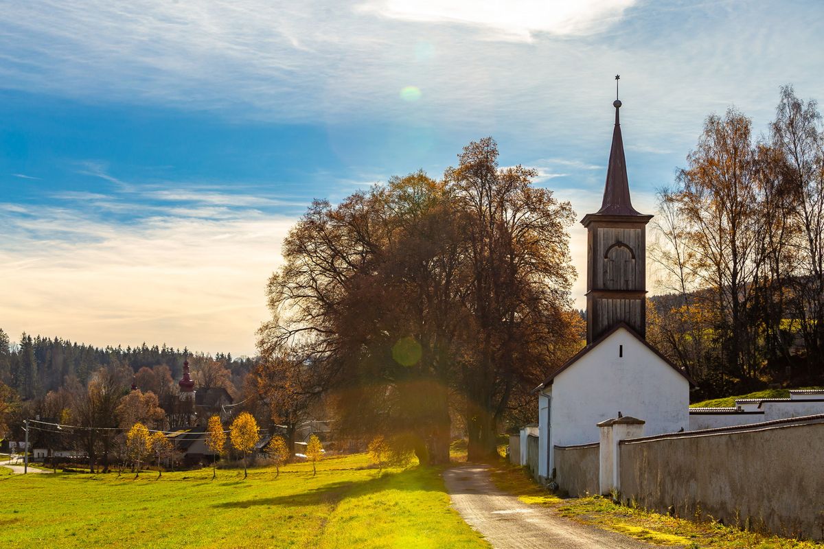Dominanta Krásného, kostel svatého Václava, skrývá překvapení – při opravě fasády v roce 1985 našli stavbaři původní románské okénko, které odborníky dovedlo k závěru, že tento kostelík už tady stál kolem roku 1250. Na malém hřbitově nad vesnicí stojí kaple s dřevěnou věžičkou. U silnice najdete Chalupu pod lípou, kde roste památná lípa velkolistá s obvodem kmene bezmála šest metrů. Chalupa pořádá během roku různé kulturní akce, nejbližší možnost ji navštívit budete mít 11. - 14.12.2025.
