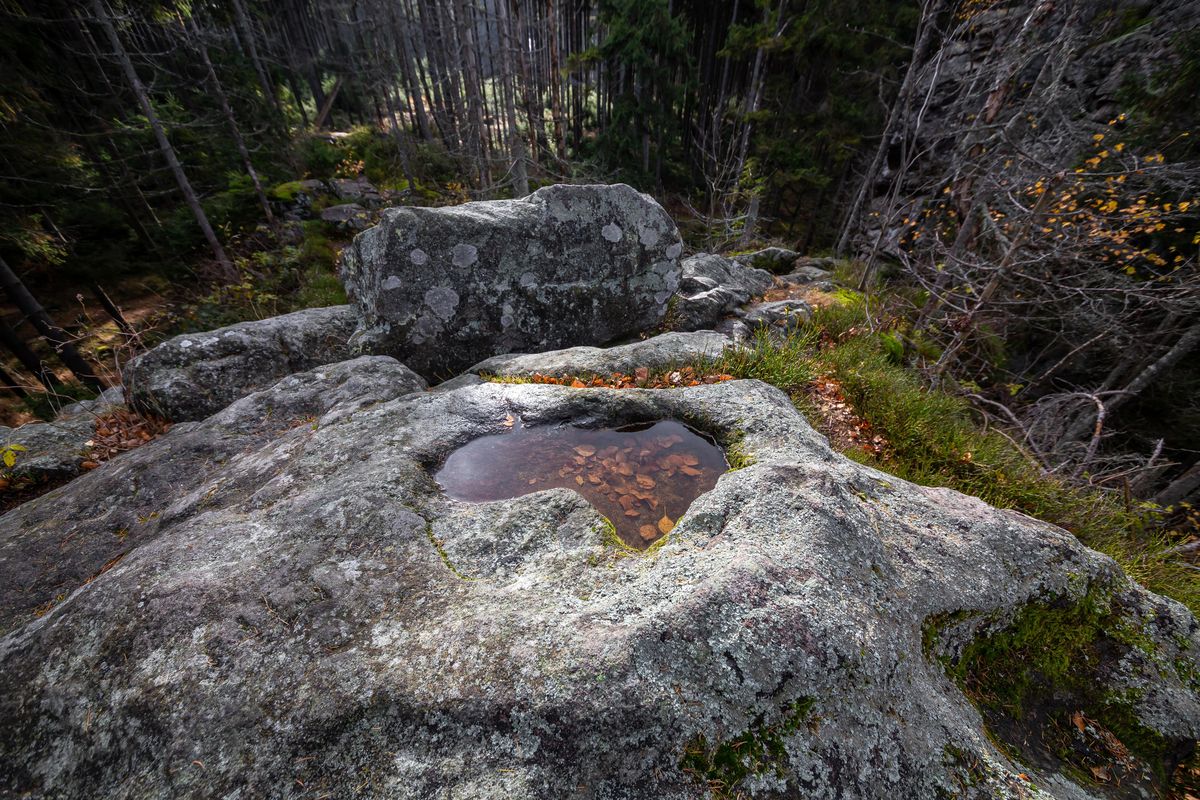 Pokud máte ještě dost energie na malou zacházku, můžete se vydat po červené značce na Rybenské perničky, což jsou dva oddělené skalní bloky. Na vrcholové plošině východní skály jsou tři skalní mísy, největší má průměr až 60 centimetrů a hloubku dvacet centimetrů. Název pochází od slova perničky - zdrobněliny pernice, což je mísa s drsným povrchem na třený mák. Lidem tyto prohlubně ve skále připomínaly právě pernice. Dřív se těmto mísám přisuzoval i kultovní původ, ale dnes víme, že vznikly erozí.