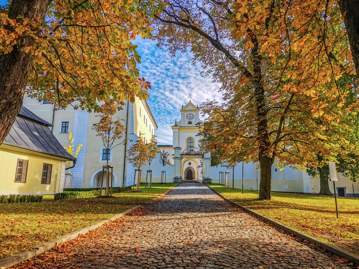Součástí areálu je také bazilika Nanebevzetí Panny Marie a sv. Mikuláše, původně gotický chrám, který Santini upravil v duchu své osobité barokní gotiky. Když se postavíte doprostřed hlavní lodi – druhé nejdelší na celé Moravě – cítíte sílu prostoru, který vás nutí zvednout hlavu vzhůru. Světlo proudí vysokými okny, klenba se nad vámi rozplývá do oblouků a vše působí neobyčejně harmonicky.