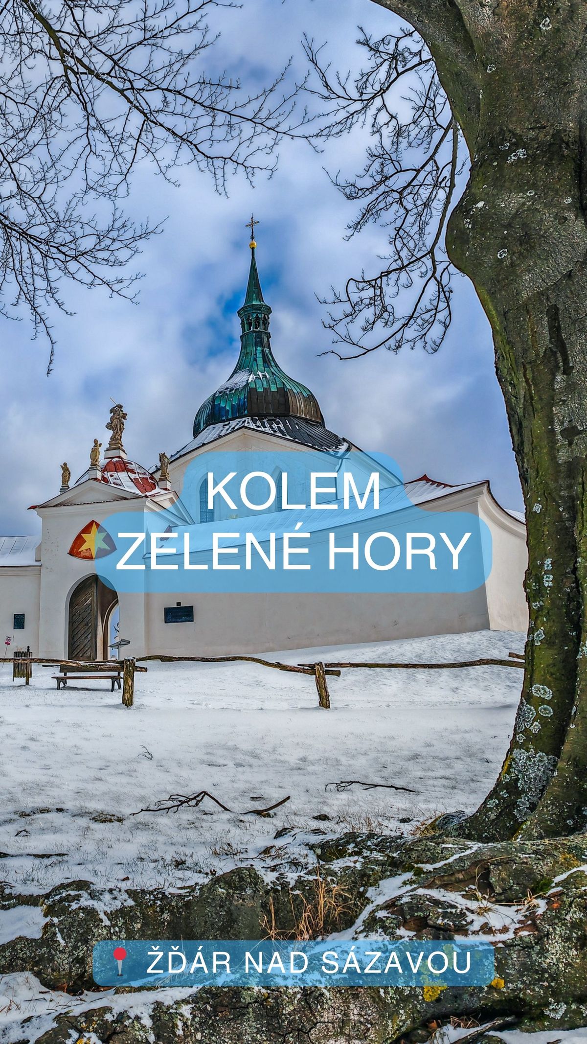 Stezka nás dále vede kolem Konventského rybníka. Zamrzlá hladina, rákosí pocukrované sněhem a dřevěné lávky, které vás vedou bezpečně dál. Jakmile se stezka začne mírně stáčet, otevře se vám pohled, který se nikdy neomrzí. Na vrcholu kopce se tyčí poutní kostel sv. Jana Nepomuckého na Zelené hoře.