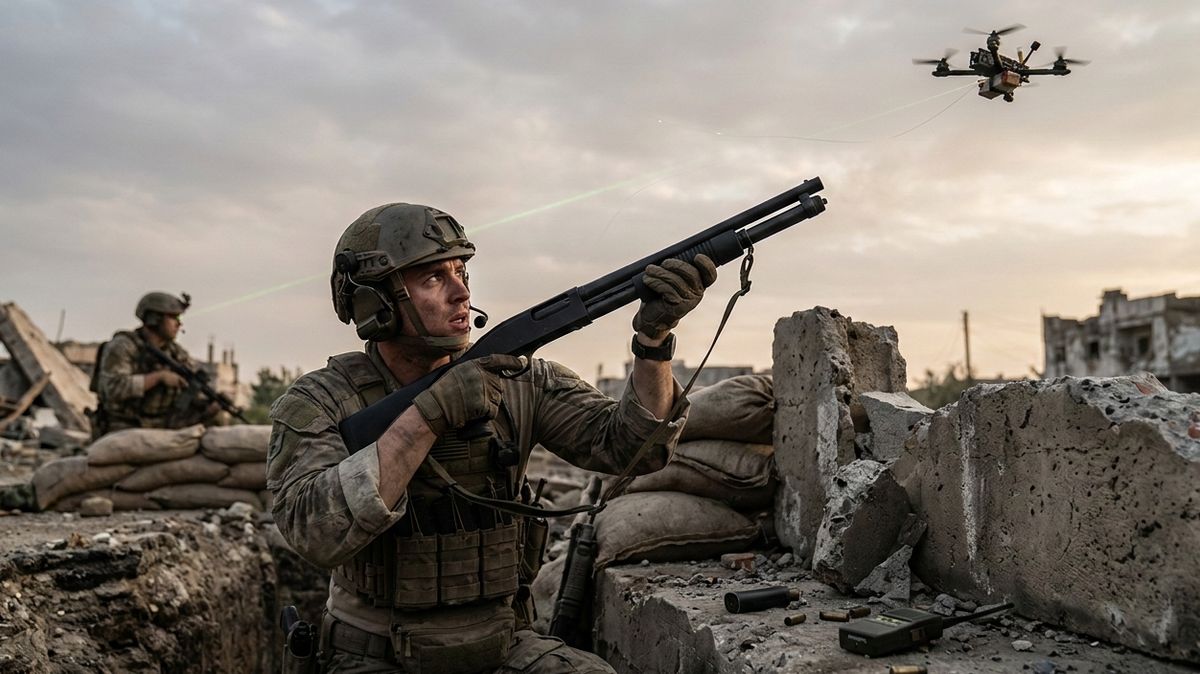 Zatímco na začátku války se vojáci snažili drony sestřelovat běžnými útočnými puškami (AK-47), dnes se standardem stávají brokovnice. Trefit malý, kličkující objekt letící rychlostí 100 km/h je extrémně náročné. Brokovnice však umí vytvořit mrak projektilů, který má mnohem vyšší šanci dron poškodit nebo zničit.