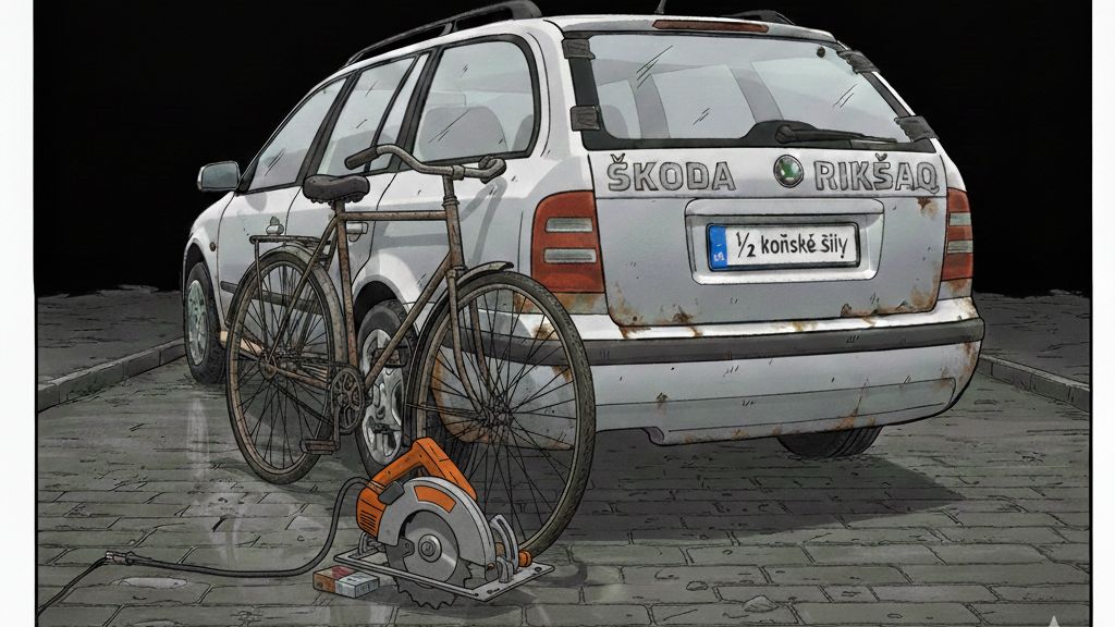 Protože se nudil, tak během dlouhé chvíle doplnil na kufr své Škody RikšaQ ještě nápis – Živý potah, ½ koňské síly. Protože mu tolik naměřili na STK.