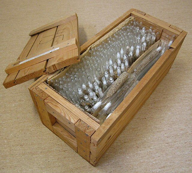 „Předváděcí box“ vzorků připravený k uložení do světového trezoru (1998)