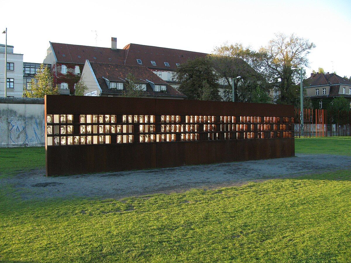 "Fenster des Gedenkens"centrální prvek památníku berlínské zdi, Bernauer Straße, Berlin, Deutschland. Využito s licencí CC. Zdroj: https://cs.m.wikipedia.org/wiki/Soubor:Fenster-des-Gedenkens-Berlin.jpg