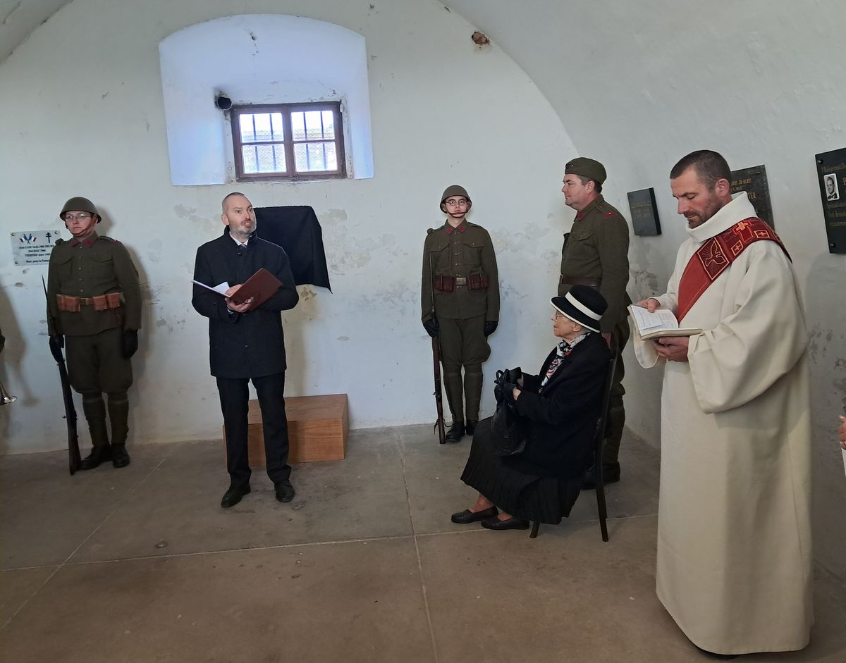 Po úvodní řeči Jana Roubínka pamětní desku v Malé pevnosti Terezín odhalila dcera generála Ludvíka Krejčího Marie Žižková a padre kapitán Milan Novotný, příslušník 43. výsadkového pluku z Chrudimi.