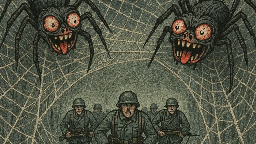 V očích má slzy. Bere ji do náručí. Míří s ní do bezpečí. Za dveřmi čekají dva obrovští pavouci. Trůní v protějších rozích. Metrové nohy. Jsou zhulení. Ví to. Mají chladné modré oči. Vypadají zhuleně. A ty jejich sítě. Vyplňují celou místnost. Jsou tak schizofrenní. Vlákna tvoří bizarní obrazce. Až přechází zrak. Jak projít na druhou stranu?