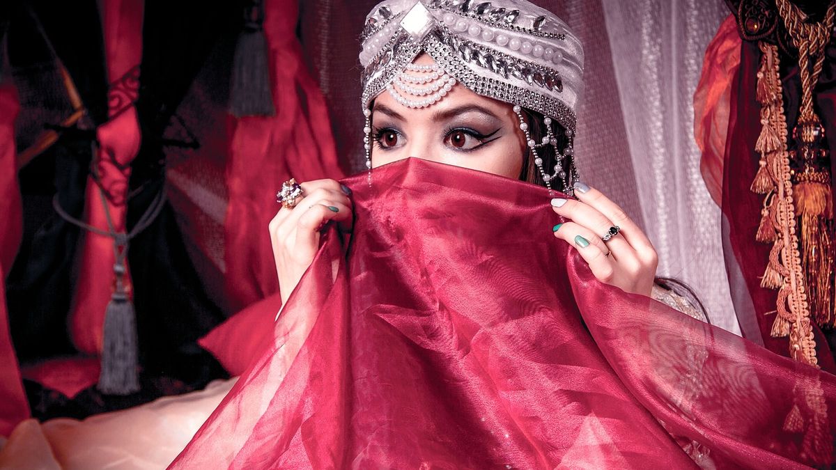 Sultánova dcera Sayyida Salme v tradičním oděvu zanzibarských princezen. Po útěku do Evropy převzala západní styl oblékání