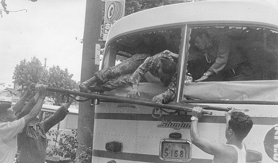 To už jim však byly v patách stovky vojáků a policistů, kteří se mezitím zmobilizovali, aby vzbouřence zastavili. Podařilo se jim dorazit až na jihozápadní předměstí hlavního města, kde však už čekala korejská armáda. Při přestřelce sjel autobus z cesty a uvízl v podrostu. V bezvýchodné situaci se vzbouřenci rozhodli vyhodit sebe a autobus do vzduchu ručními granáty. To si vyžádalo životy většiny vzbouřenců. Čtyři vzbouřenci však přežili a byli zadrženi.