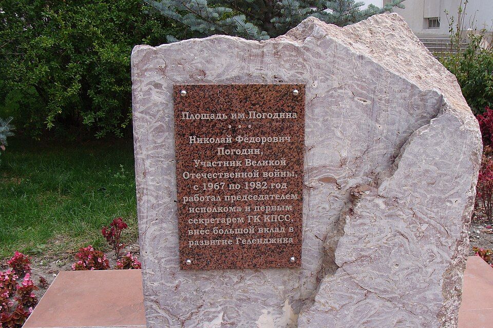 Pamětní deska v Gelegendžiku na počest N. Pogodina