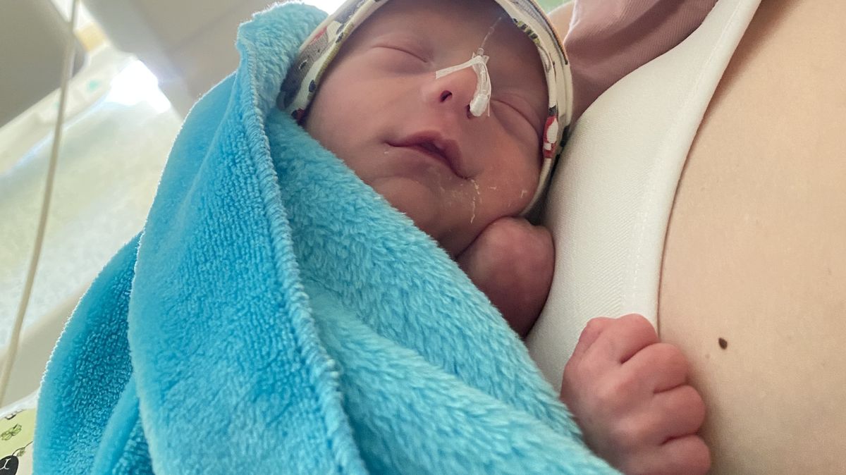 V sobotu jsme hned po snídaní vyrazili do nemocnice. Po příchodu nás čekalo obrovské překvapení! Ondra si byl schopen sám udržet tělesnou teplotu, a proto nebylo potřeba, aby byl zavřený ve vyhřívaném inkubátoru. Víko bylo odklopeno a pod dekou a peřinou ležel zachumlaný Ondra, poprvé v opravdových dětských hadrech a v čepičce. S manželkou trénoval kojení v průběhu týden už několikrát, ale tentokrát jsme jej poprvé mohli mít v podstatě celou dobu u sebe, klokánkovat, mazlit se, užívat si to, že jsme spolu. Byl to skvělý den.