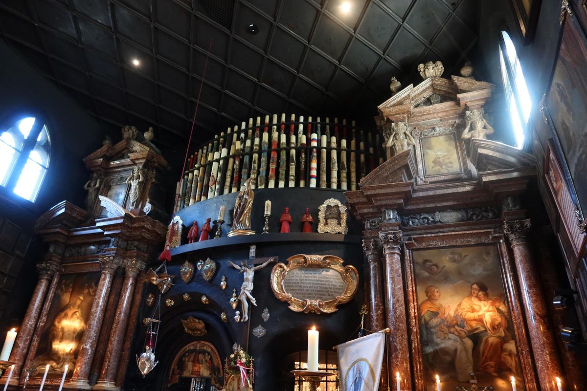 Kaple je zevnitř i zvenčí doslova obložena votivními obrazy