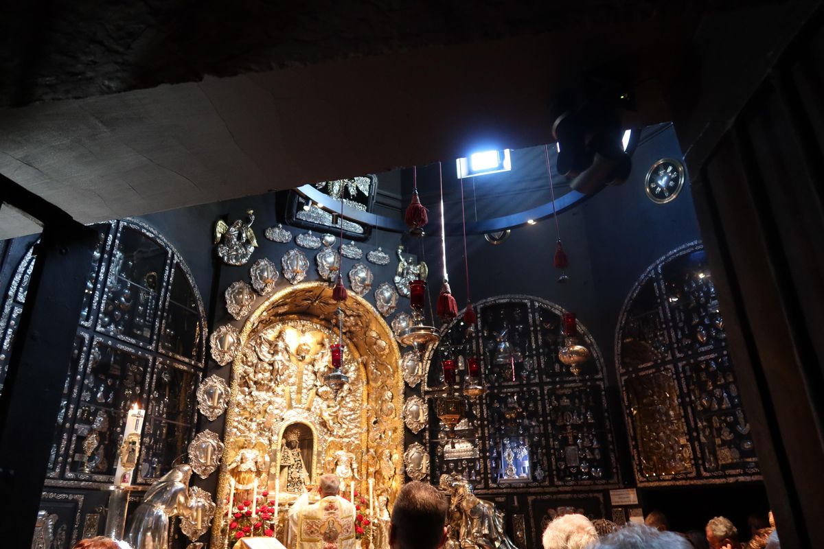 Šli jsme ke kapličce a zjistili jsme, že je doslova obložená votivními obrazy. Jsou tam i letošní data. Zajímalo by nás, jak tam člověk se svým obrazem dostane místo. Protože zájemců musí být přetlak. A jsou to ruční práce amatérů. Občas to někdo neodhadne.