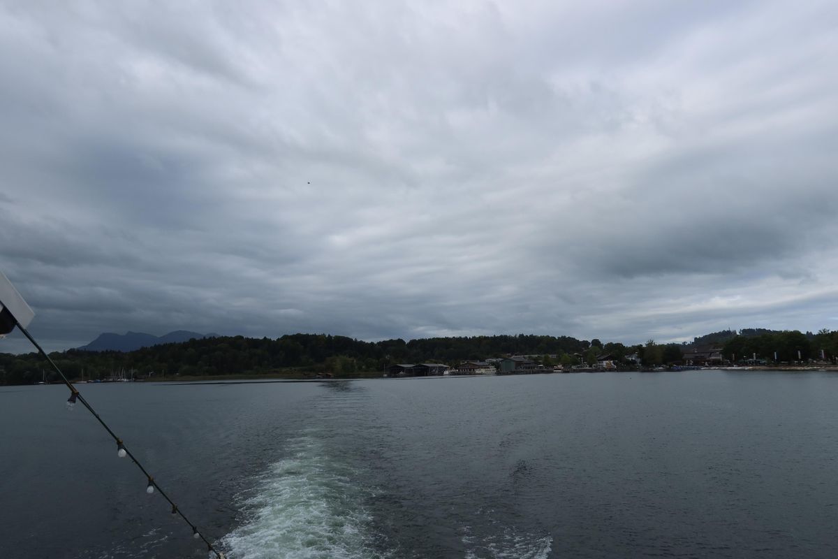 Přijeli jsme tedy do Prien am Chiemsee na parkoviště do přístavu a šli si koupit lístky na loď. Na WC byla paní, původem Češka, která emigrovala někdy v 80. letech a hlučně si pochvalovala, jak se jí v Německu daří. No, nevím, jestli je zrovna tahle práce splněný sen.
