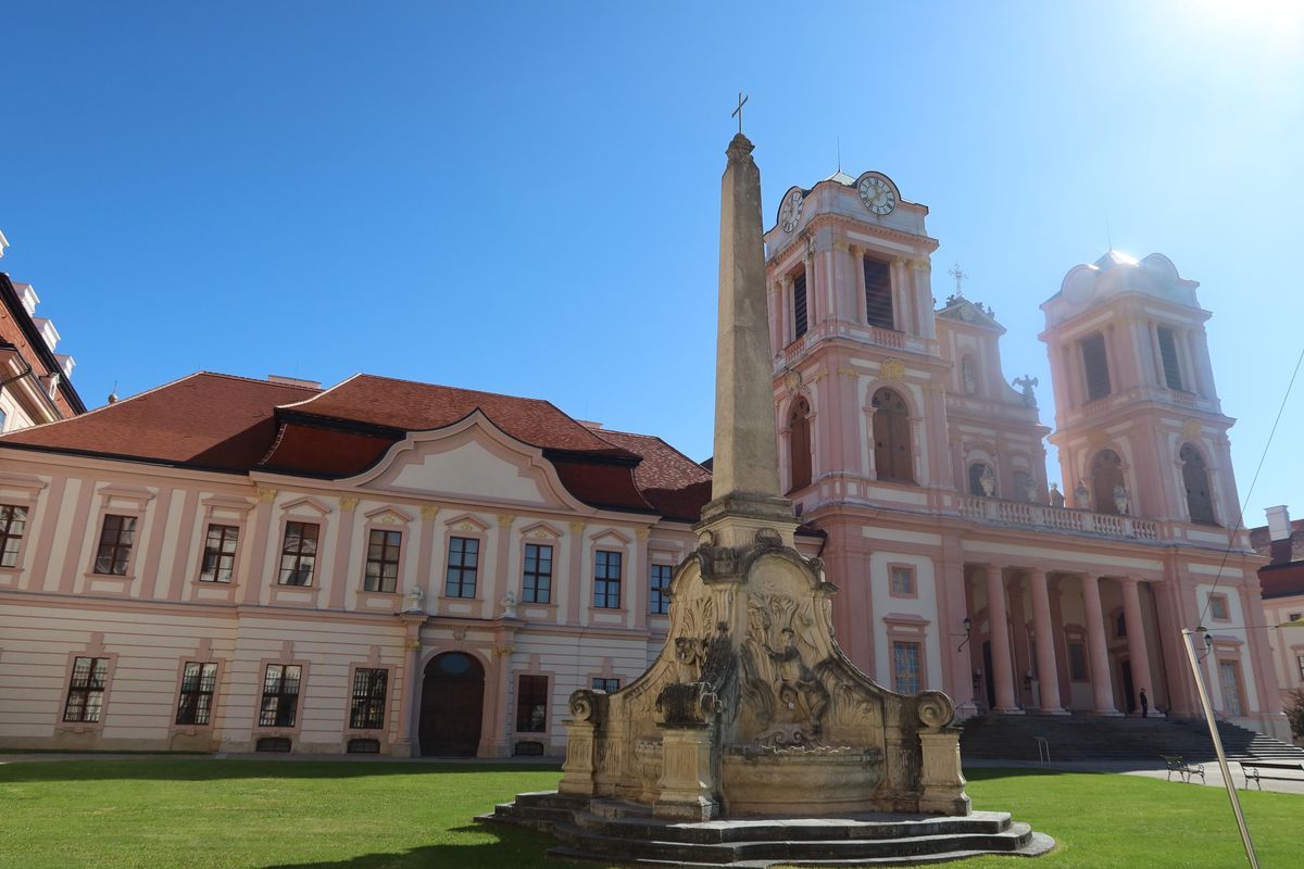 Klášter v Melku se otevírá v 9, což jsme neměli šanci stihnout, protože jsme na dovolené, ne na útěku, a nebudeme vstávat před šestou, což bychom při tříhodinovém přesunu museli udělat, ale jelikož je zámek Artstetten jenom půl hodiny daleko a zavírá v 16:30, nemuseli jsme spěchat.