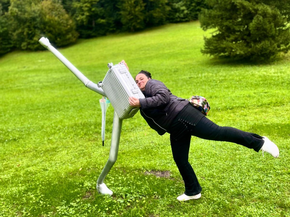 Také jsme narazili na další díla Erwina Wurma. Prázdné obleky a nafouknutý dům, který vypadal jako marshmallow. Uvnitř byla projekce o duševním zdraví. Odešla jsem dřív, než to moje duševní zdraví stačilo poškodit. A pak kabelky s nohama. S některými instalacemi jsme si udělali fotky, protože si o to ty instalace přímo říkaly.
