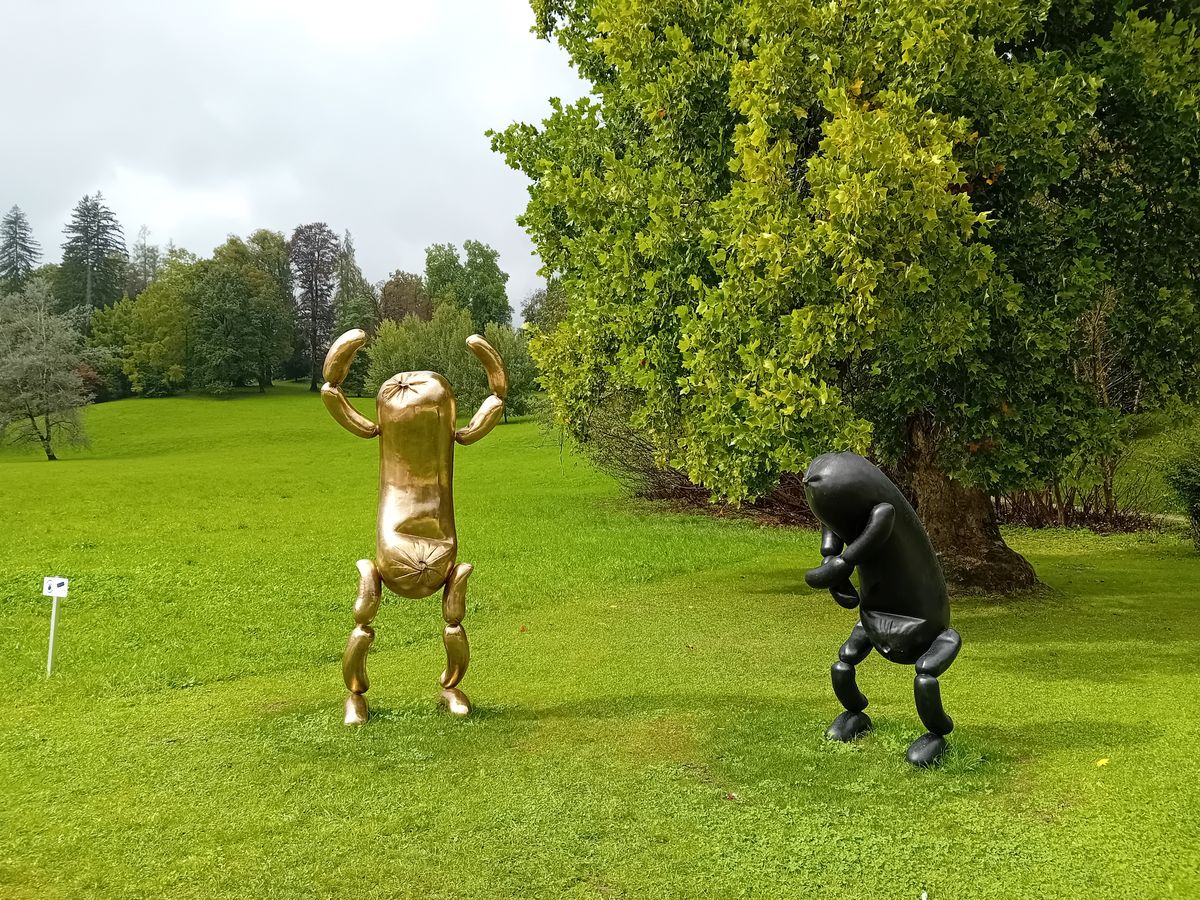 Cestou k vile jsme poprvé a ne naposled narazili na Erwina Wurma, což v překladu znamená Červ. Podstatou jeho umění jsou rozličné neživé předměty, které mají nožičky. První, co jsme potkali, byly párky, nebo možná klobásy, ale ono je to jedno. Ve vile se nesmělo fotit a fotky zvenčí jsou takové ubrečené.
