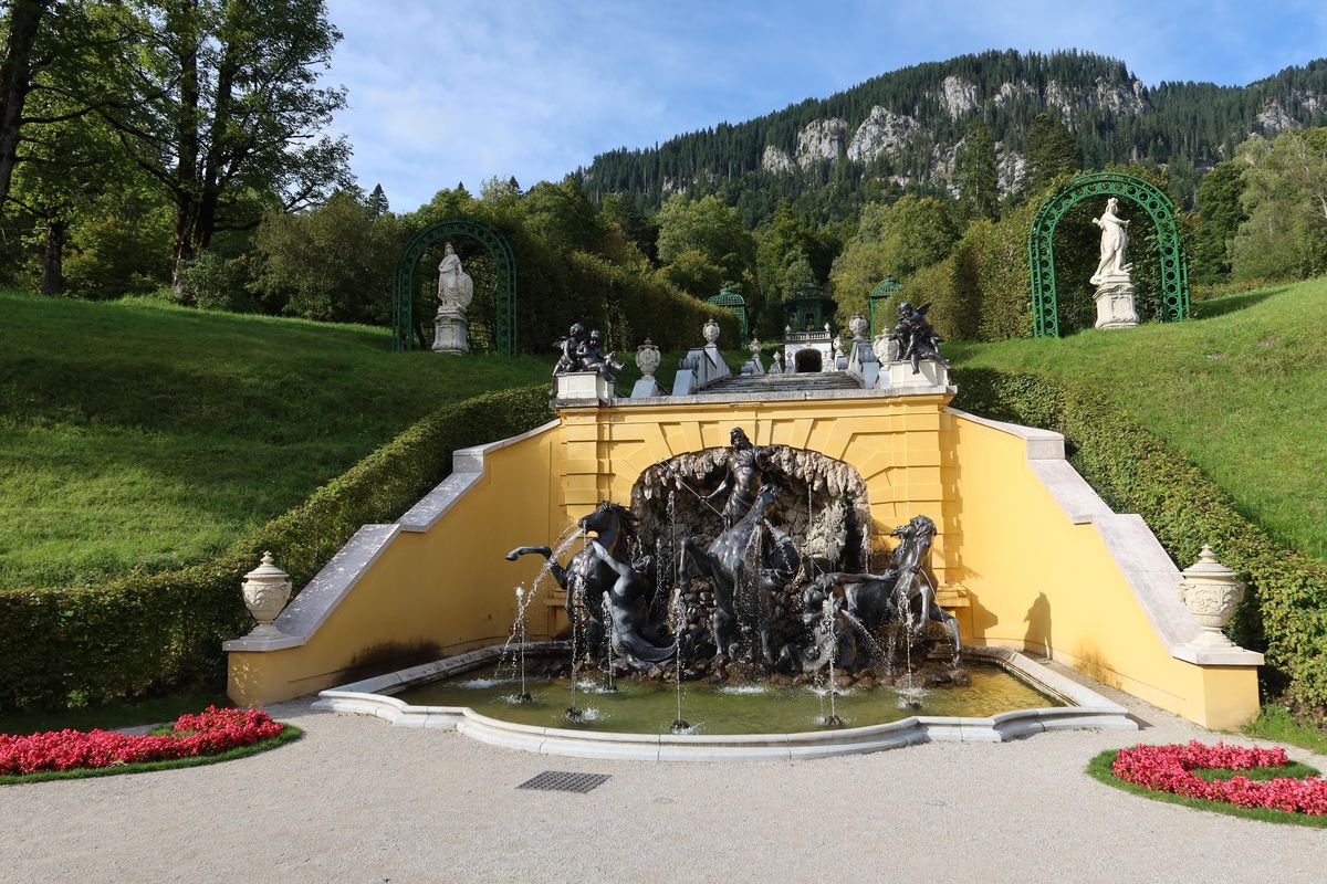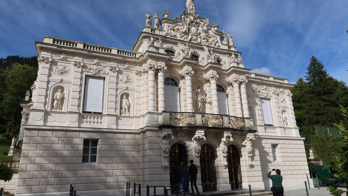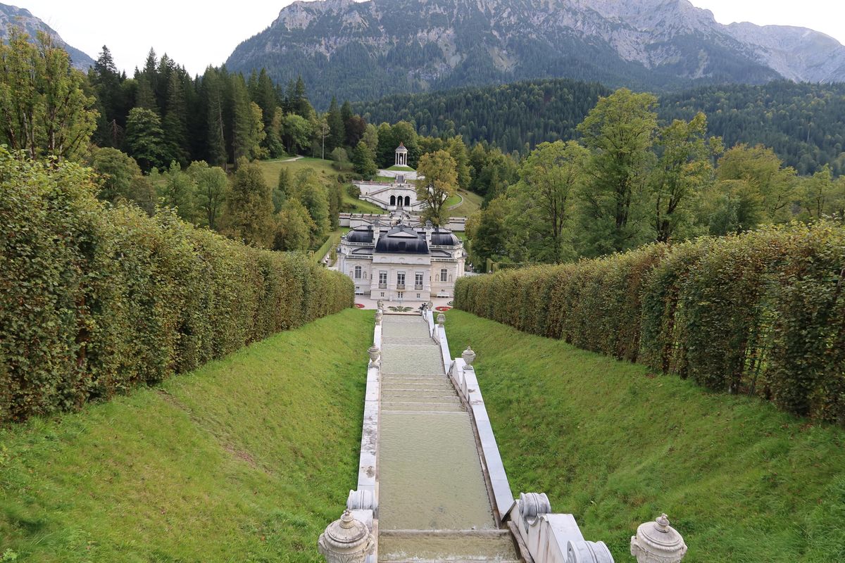 Zámek Linderhof byl prvním zámkem, který dal Ludvík postavit. Proto byl jako jediný dokončený a král tady opravdu žil, a to dva týdny v měsíci po dobu 10 let. Název jsem soustavně komolila na Lindenhof, ale on to není zase tak velký přešlap, oboje se odvozuje od názvu lípy, Linde. Hof znamená dvůr.
