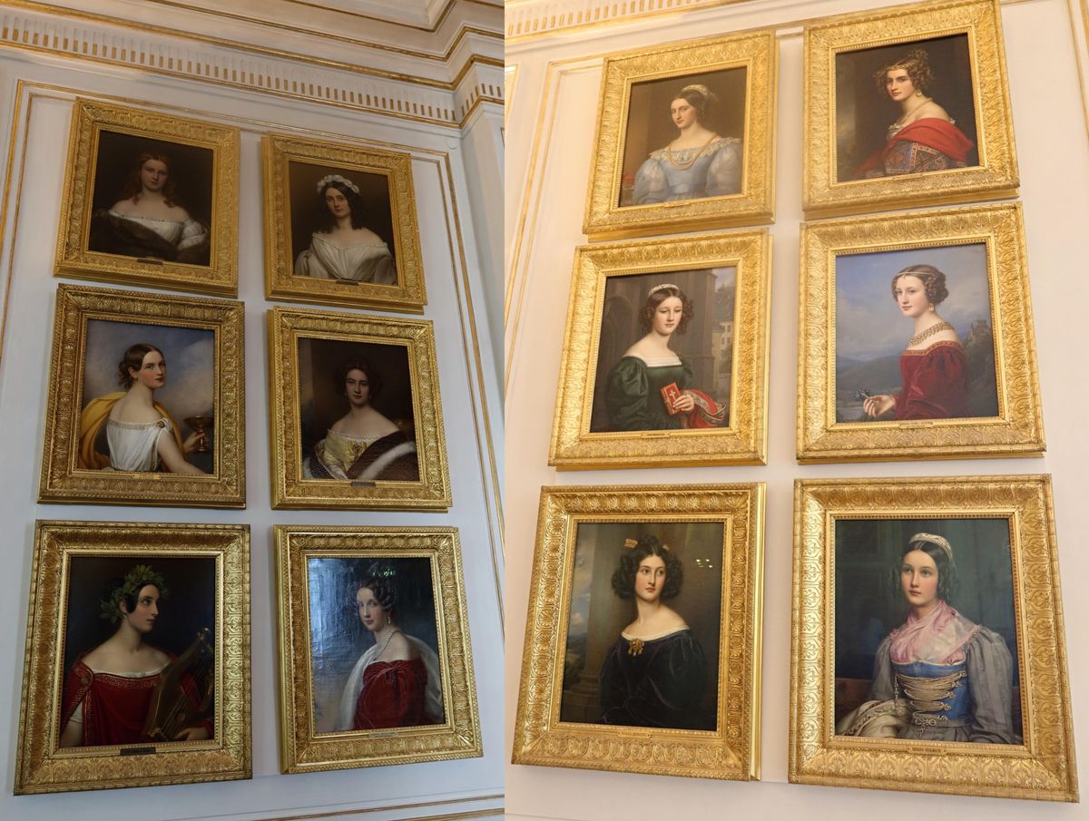 Hlavním lákadlem je Galerie krásek Ludvíka I. Je to 36 portrétů, které pro krále namaloval Joseph Karl Stieler. Jsou mezi nimi urozené i neurozené ženy. Je tam Ludvíkova matka Marie Pruská a matka Franze Josefa Sofie. Je tam ovšem i tanečnice Lola Montez, která zapříčinila Ludvíkovu abdikaci. Dlužno říci, že většina dam je krásná i z dnešního pohledu. Kromě asi dvou, které se tam dostaly patrně proto, že byly královy příbuzné.