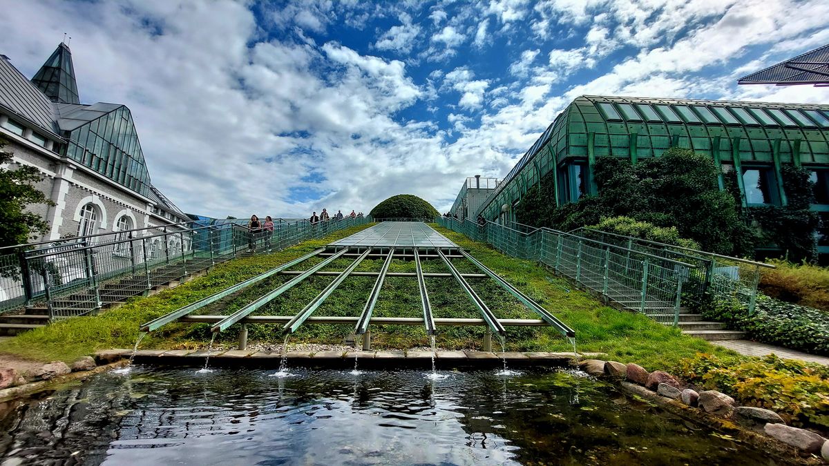 Na levém břehu je univerzitní knihovna s botanickou zahradou na střeše. Krásné místo.