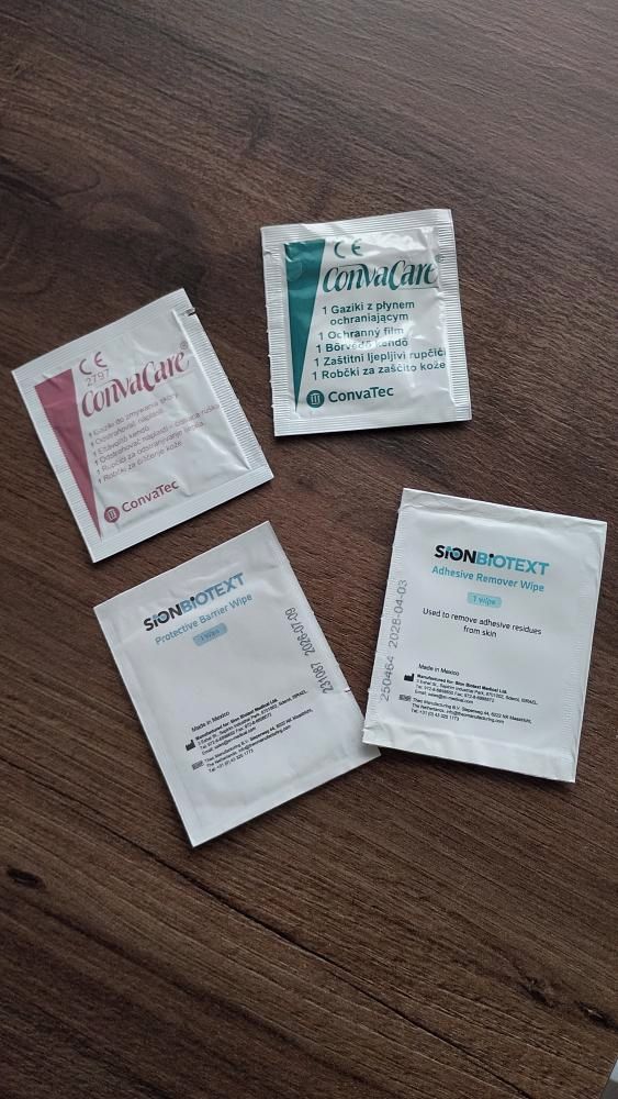 A rozdíl v pomůckách je naprosto zásadní. Jedna obsahuje mastný papírek na odstraňování přilepených pomůcek na těle, druhá obsahuje desinfekční papírek, na desinfekci kůže. Je jasné, že pokud se má na vyčištěnou kůži lepit, nemůže být kůže mastná. To samozřejmě všichni víme, že na mastném nic nedrží. Nesmí tedy dojít k záměně obou pomůcek.