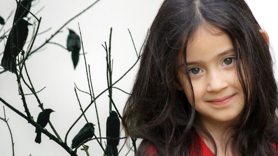 Všichni se dali do psaní, jen malá romská dívka seděla a koukala ven z okna do nebe. Pozorovala hejno vran.