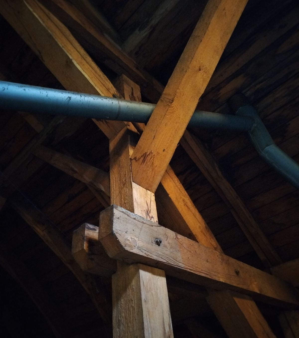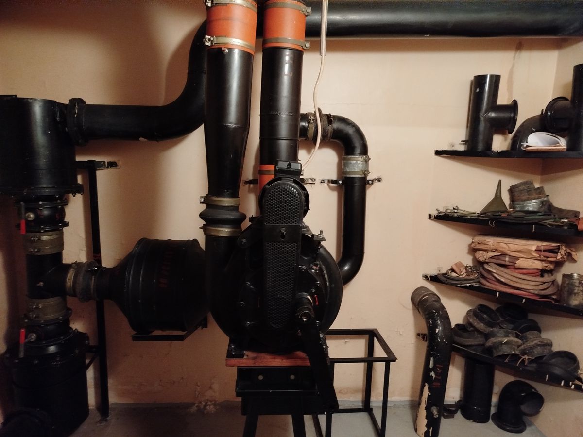 Spleť trubek vypadá poměrně nově, asi byla do podzemí vestavěná mnohem později, v 80. letech 20. století prošla budova pošty zásadní přestavbou včetně interiéru, kde zmizela většina zásadních prvků Wiesnerova funkcionalistického vybavení.