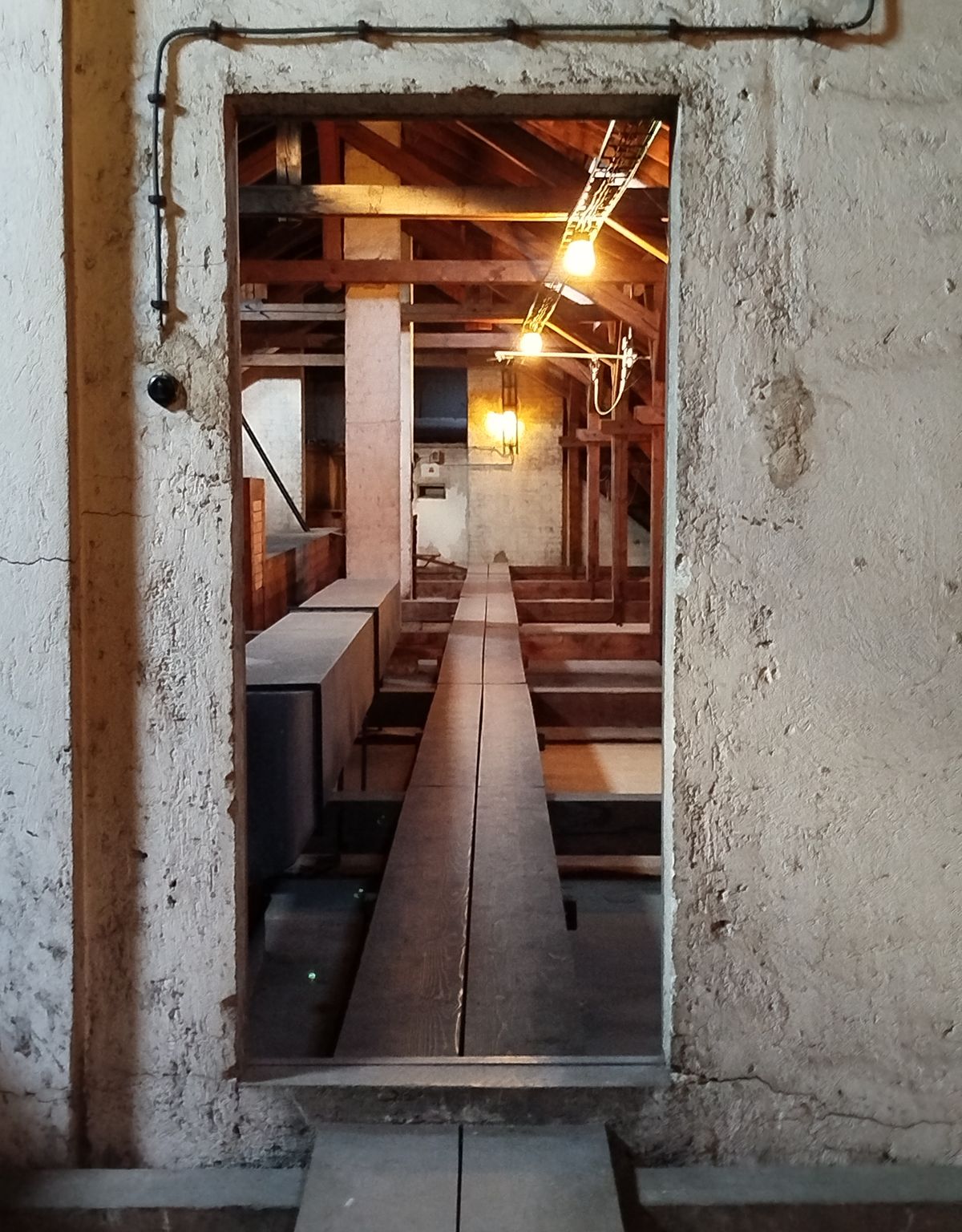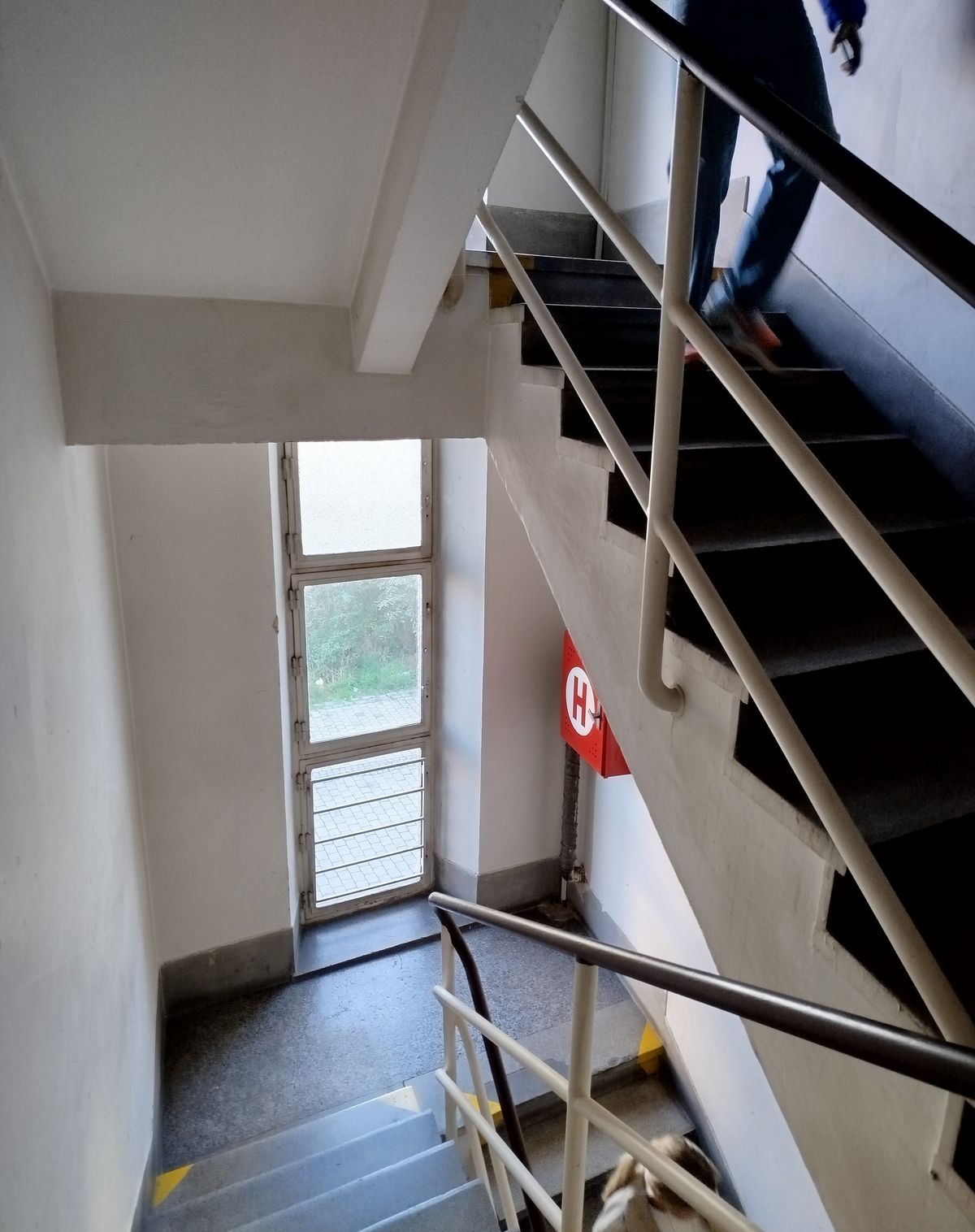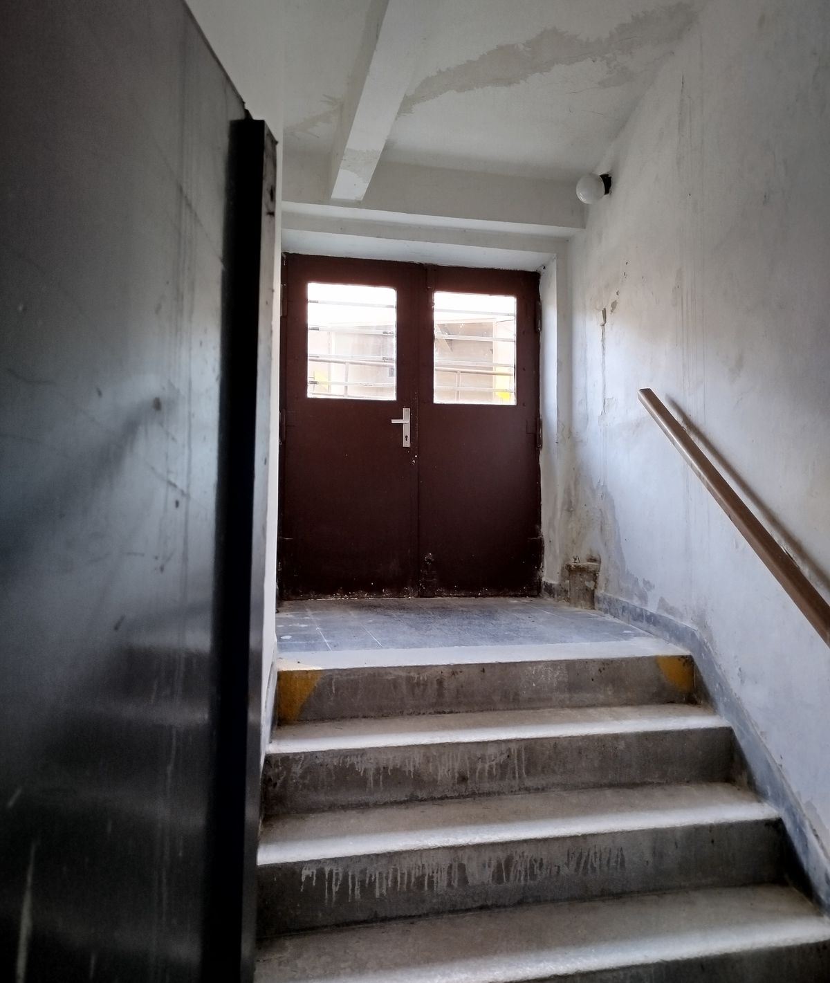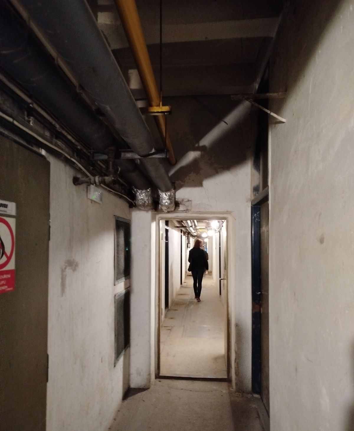 Z podkroví pošty sestupujeme schodištěm do krytu, ten byl spolu s přístavbou pošty vybudován v roce 1959.