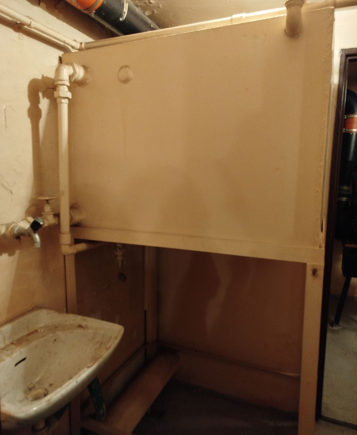 Jediné umyvadlo je zásobováno vodou z přilehlé nádrže.
