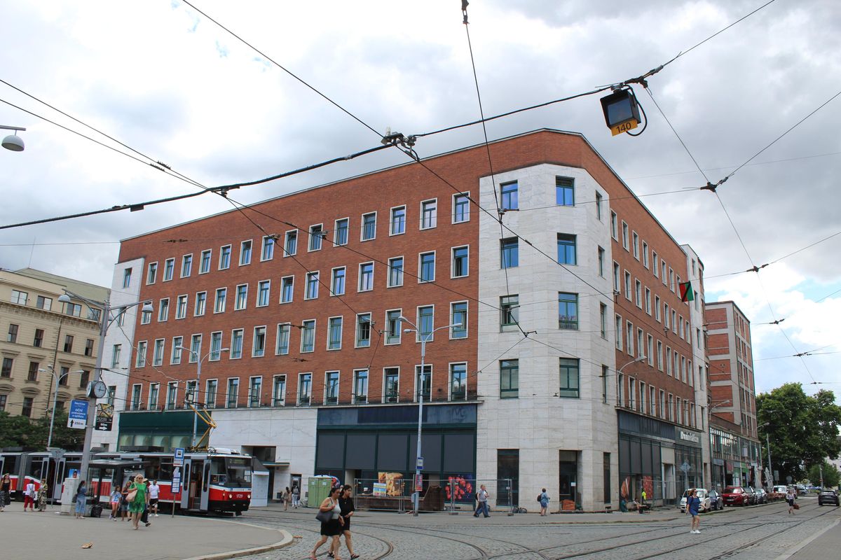 Tento monumentální blok budov byl poslední významnou realizací Ernsta Wiesnera v Brně. Podařilo se mu citlivě sjednotit jeho již dříve realizovanou budovu paláce Morava s novostavbou jednotným stylem a fasádou.