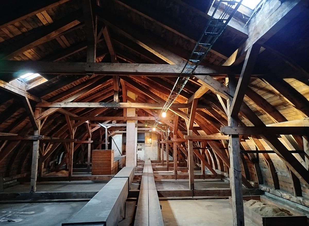 Nezvykle řešená střecha byla původně pokrytá břidlicí, po rekonstrukci její náhražkou, střecha odpovídá tvarem klášterní klenbě. Na fotografii je pohled do interiéru pošty, široké schodiště mělo být původně venkovní.