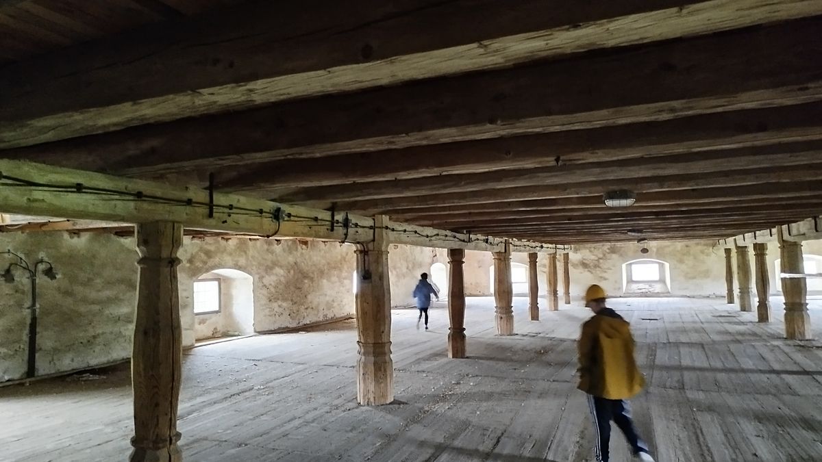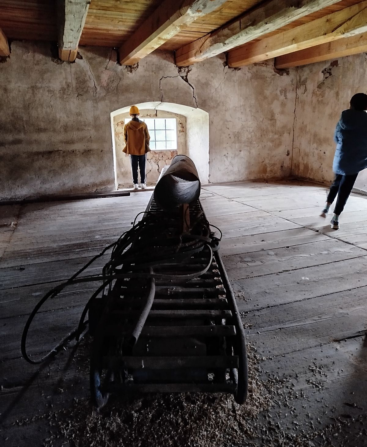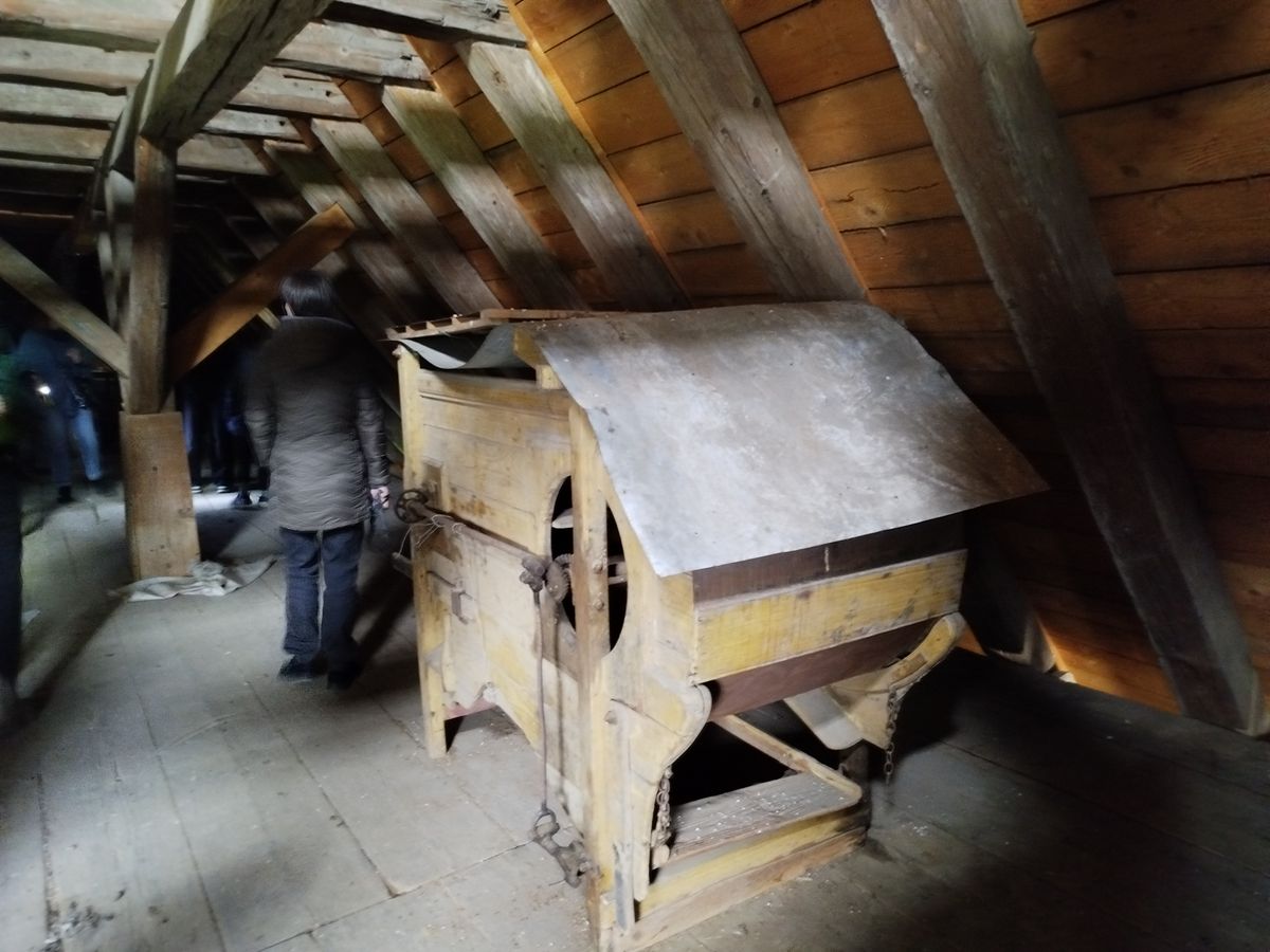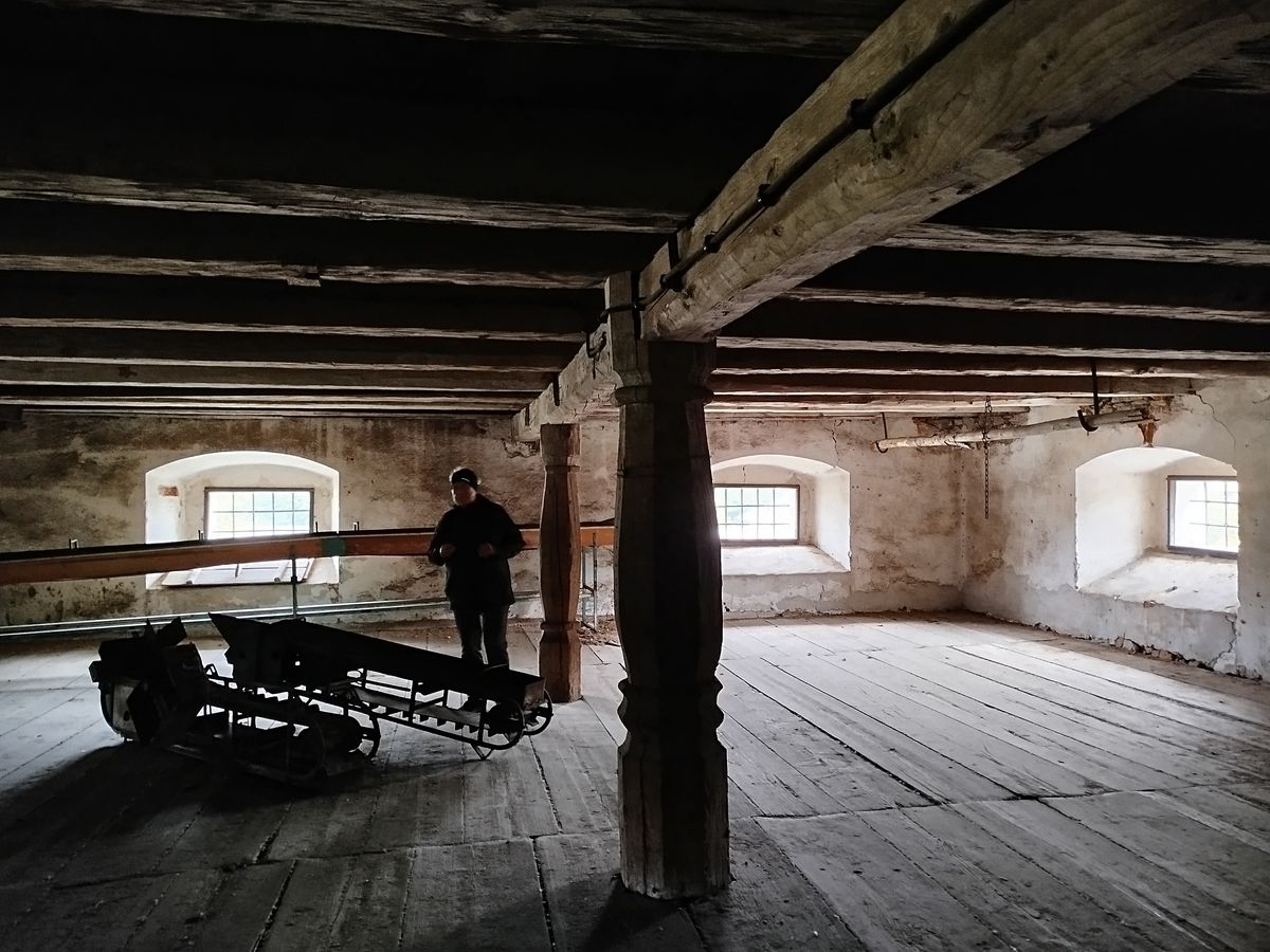 V budově se zachoval v tomto zařízení nepostradatelný dopravník, zde poněkud delší. Na dřevěném stropu jsou viditelné nové trámy z doby rekonstrukce v letech 2000 až 2001.