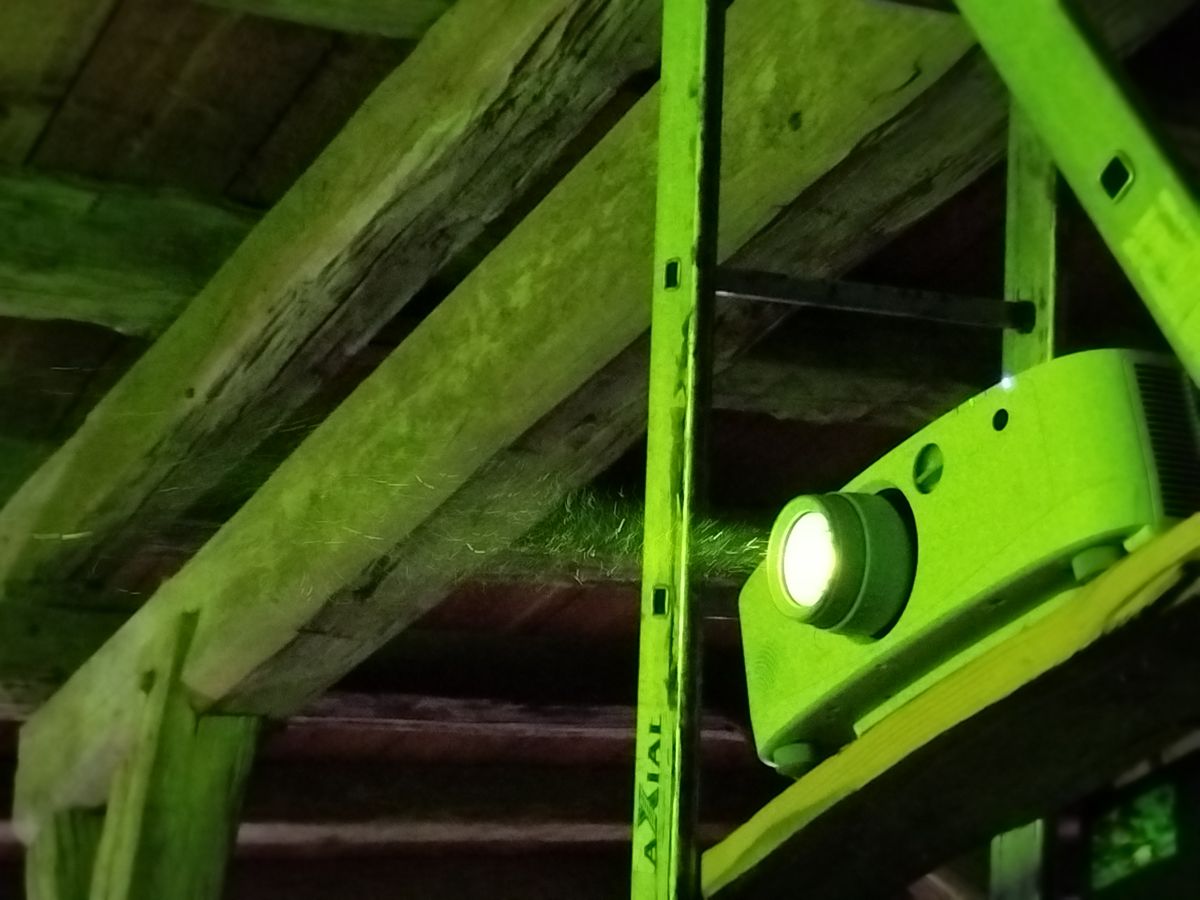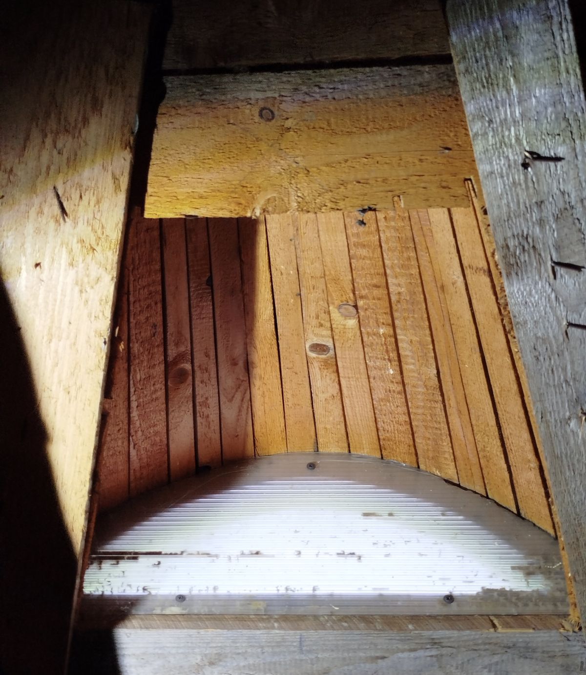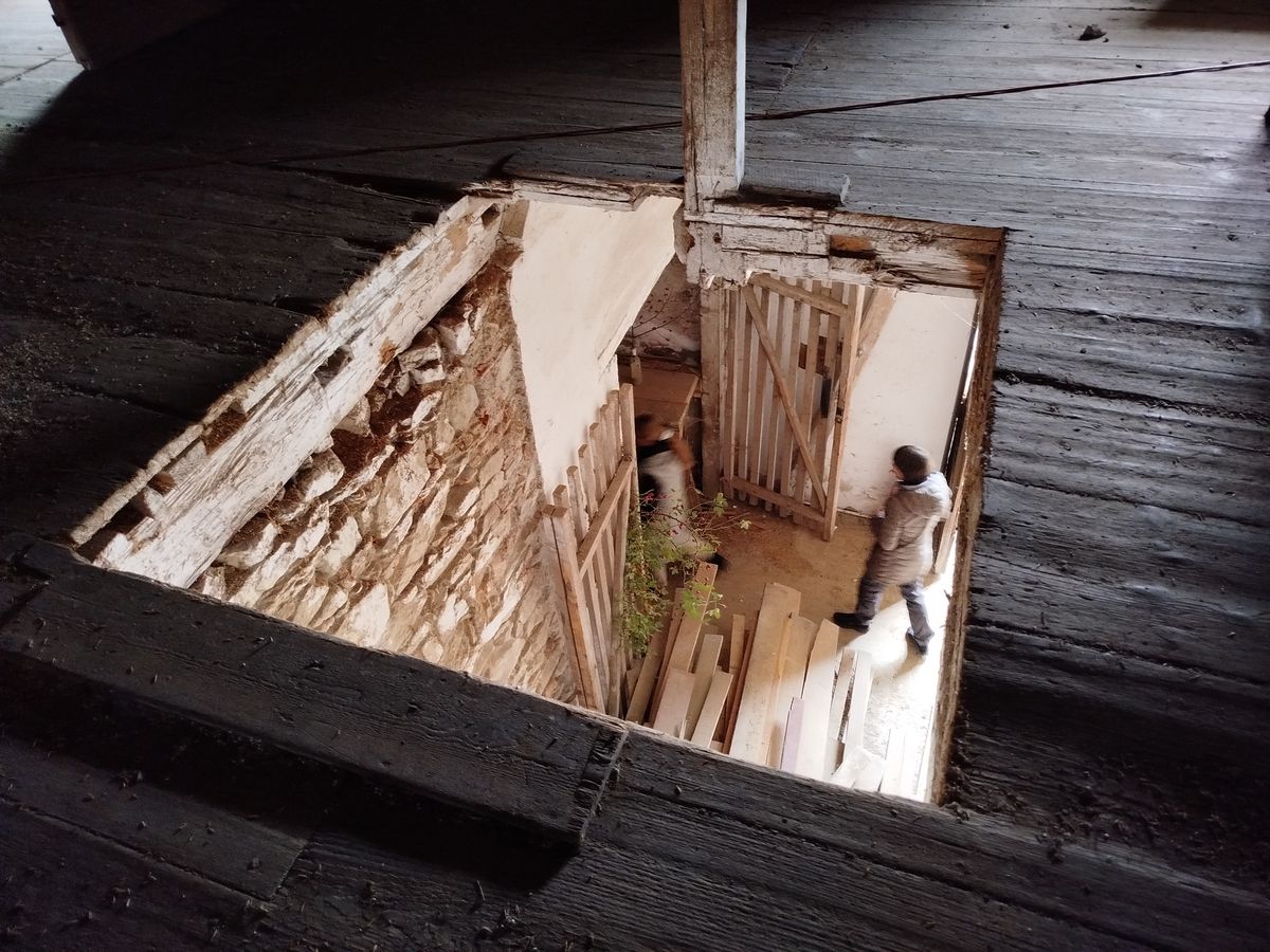 Přestože je sýpka v dobrém stavu a uklizená, za léta po rekonstrukci se zde nashromáždila spousta prachu, zde důkaz v paprsku světla.