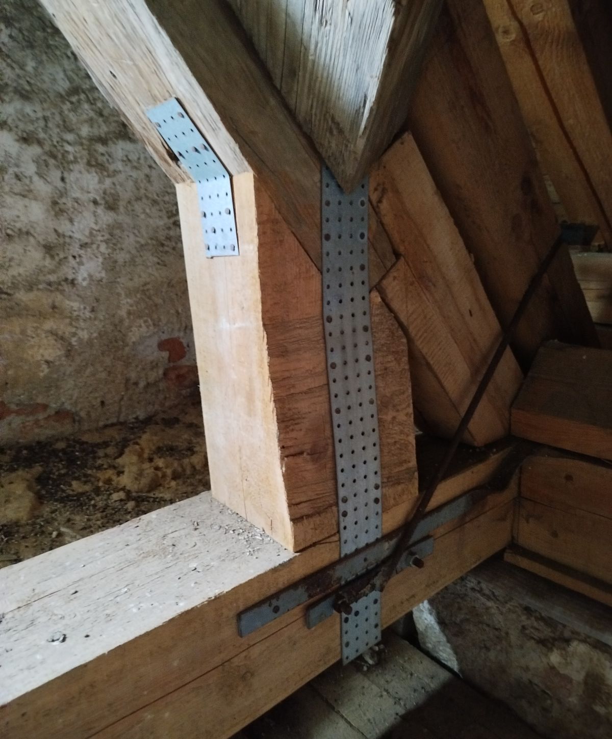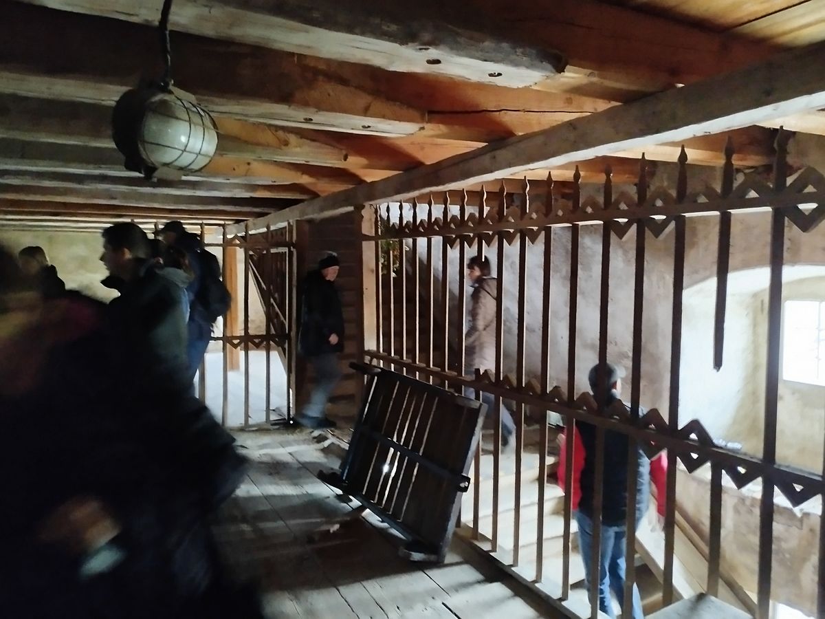 Na fotografii je ukázka umění barokních stavitelů se dřevem v prostoru tří pater v krovu stavby.