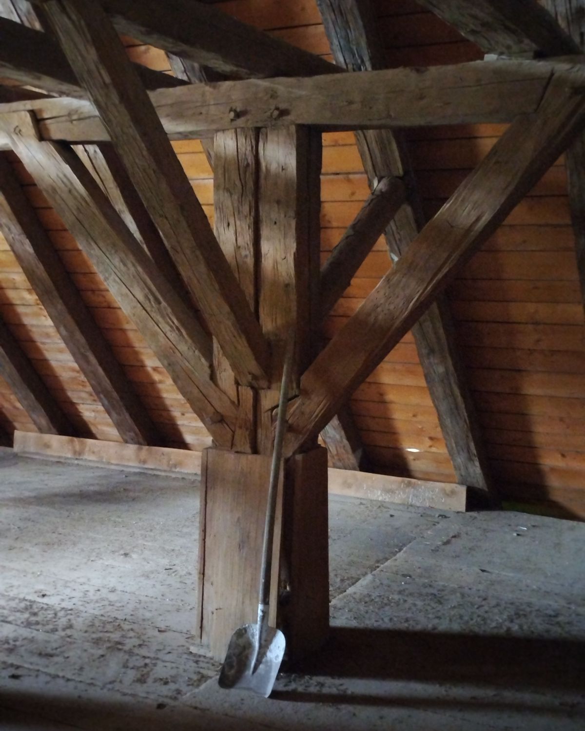 Podle dendrologického výzkumu sloupů pochází dřevo z let 1708 a poté 1717. Na stavbu bylo použito dřevo z různých druhů stromů, střecha byla původně ze šindele, dnes je pokrytá břidlicí.