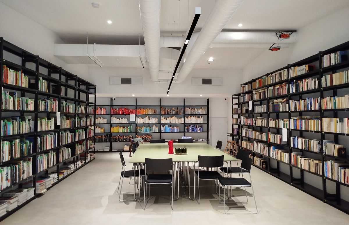 Knihovna v prvním patře je otevřena těm, kdo si chtějí prohloubit znalosti o umění a příbuzných oborech. Knihy lze číst v čítárně, kavárně nebo zahradě. Knihy si lze vypůjčit jen na místě, tedy to znamená, že si je nemůžete vzít domů. Pokud si někdo chce vzít knihu ven na zahradu, jen to nahlásí obsluze u informačního pultu, ta knihu zaeviduje. Tam si též lze vypůjčit deku, pro pobyt na zahradě.