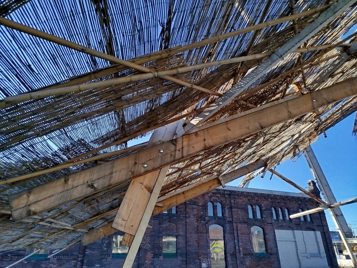 Základem instalace z roku 2024 je část ocelová konstrukce z bývalého hobbymarketu, dále dřevo, bambus a rákos. Autorem je architektonické studio MAK!, a to Adam Wlazel a Kateřina Vídenová.