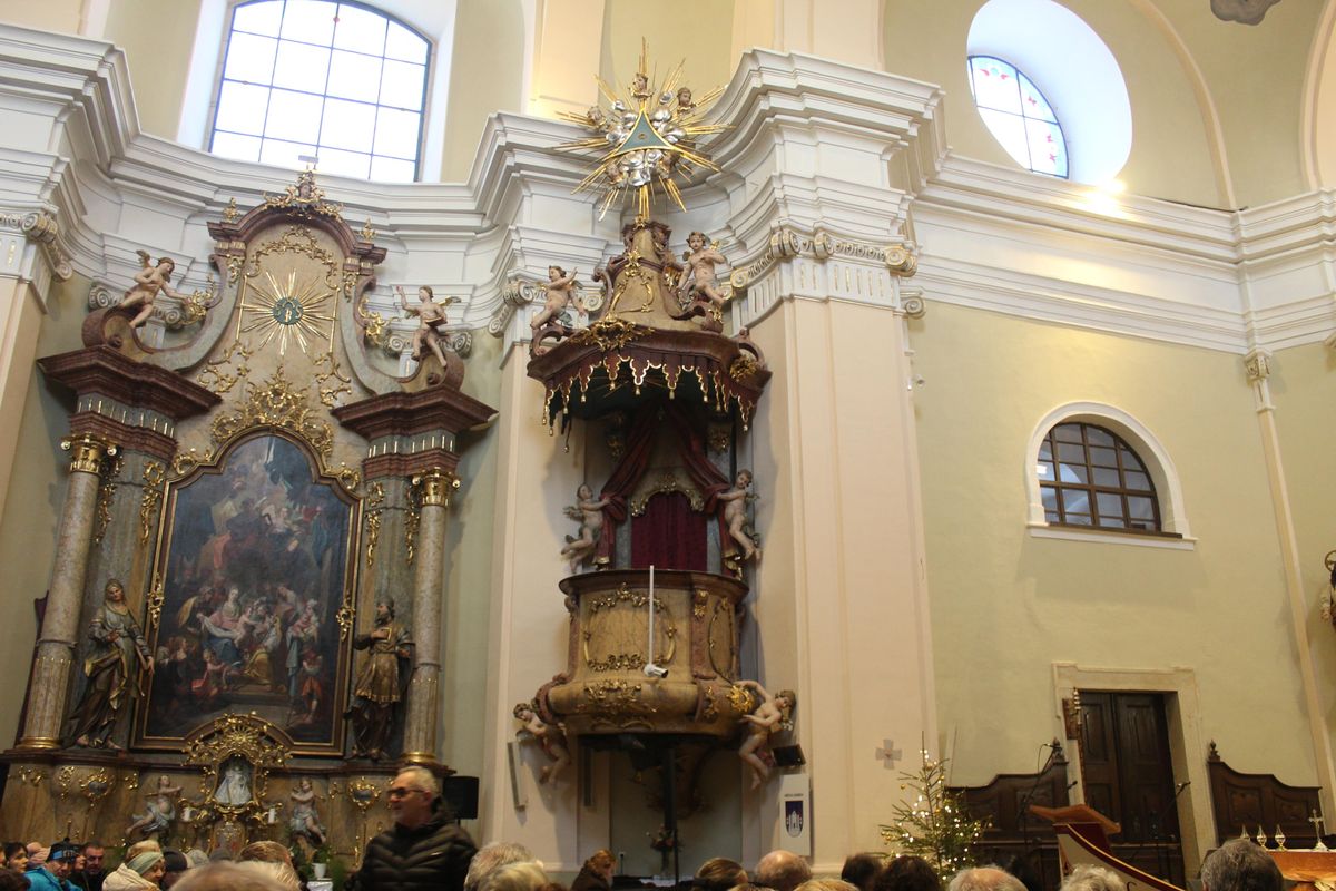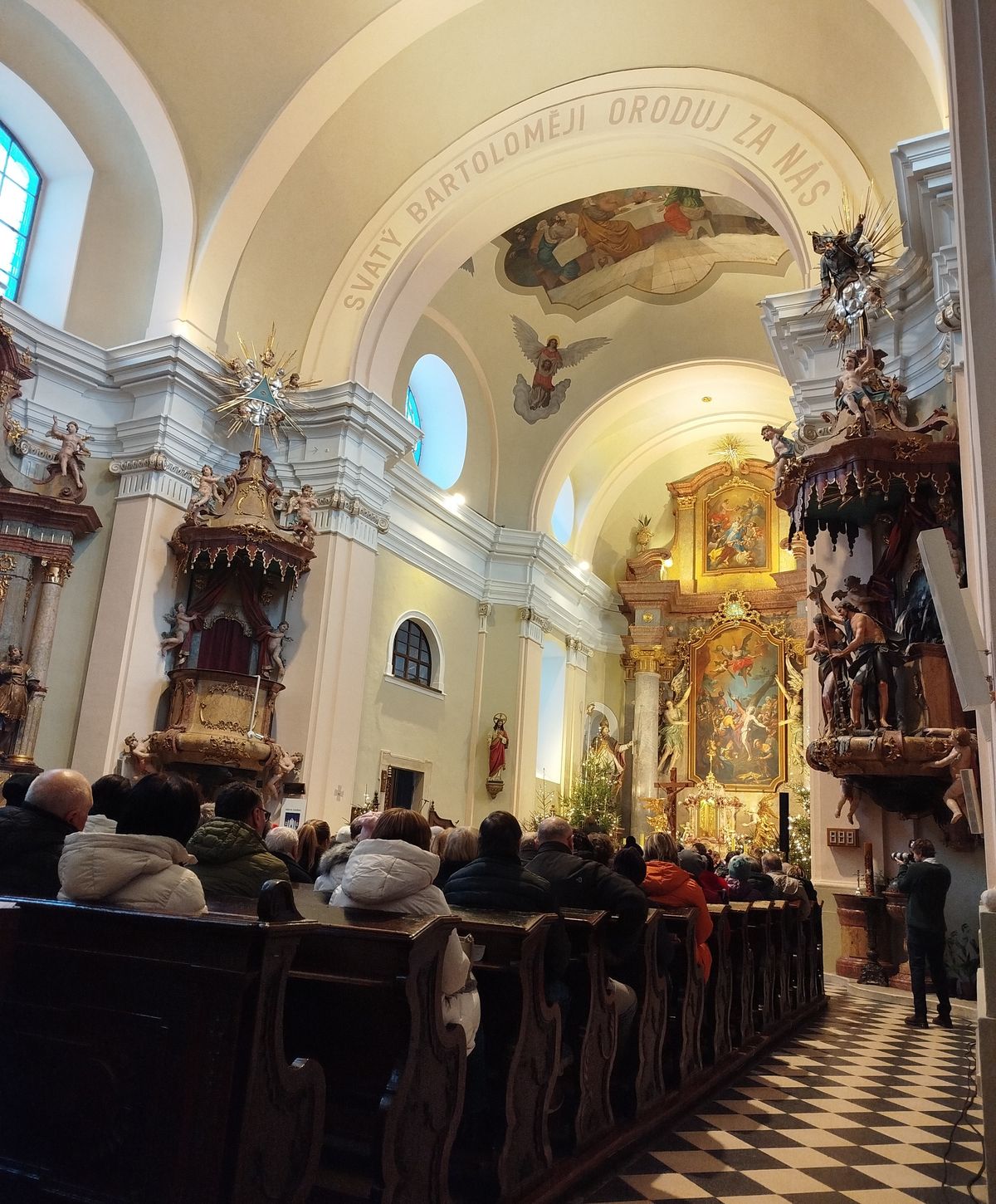 Na fotografii je detail vánoční výzdoby kostela sv. Bartoloměje.