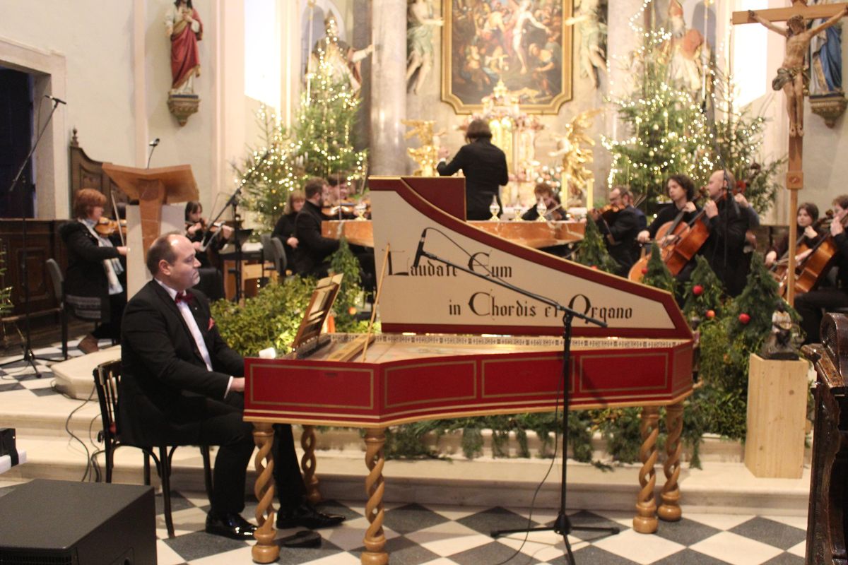 Cembalista Martin Hroch, zábřežský rodák, doprovodil orchestr ve skladbě Baldassara Galuppiho (1706-1785) s názvem Cembalo Concerto in C.