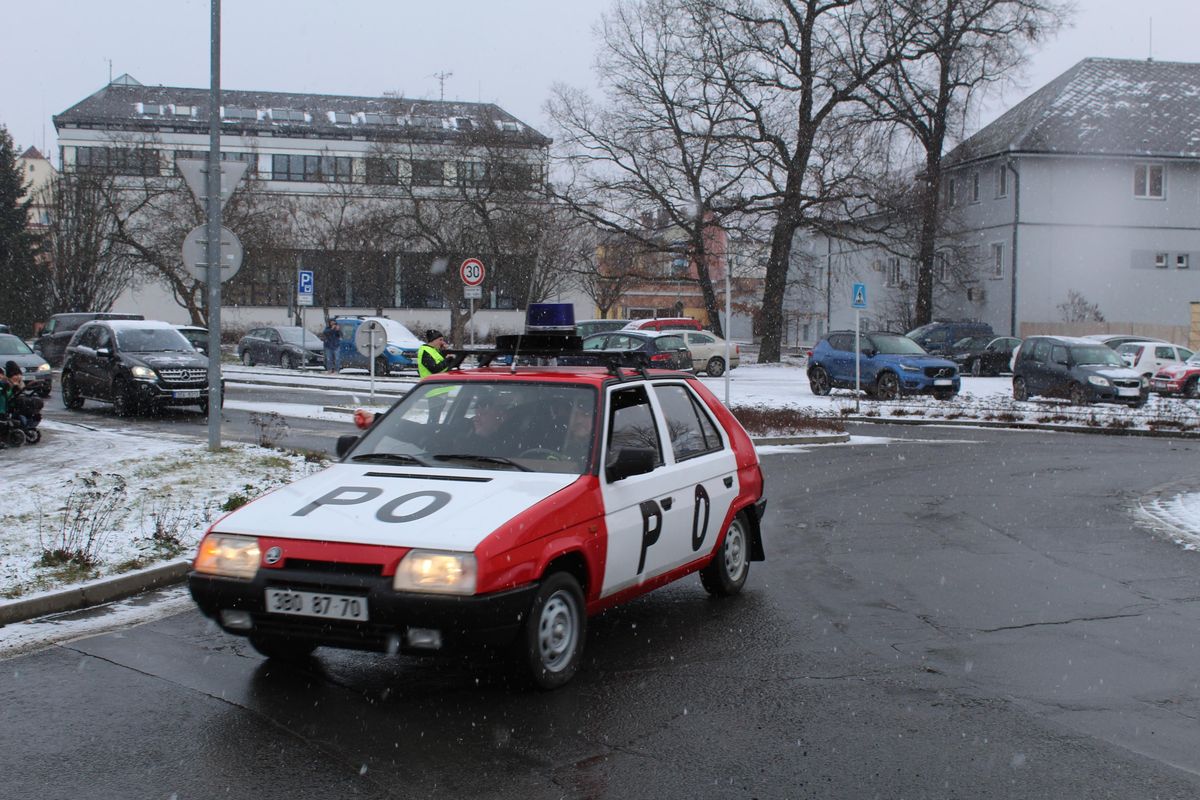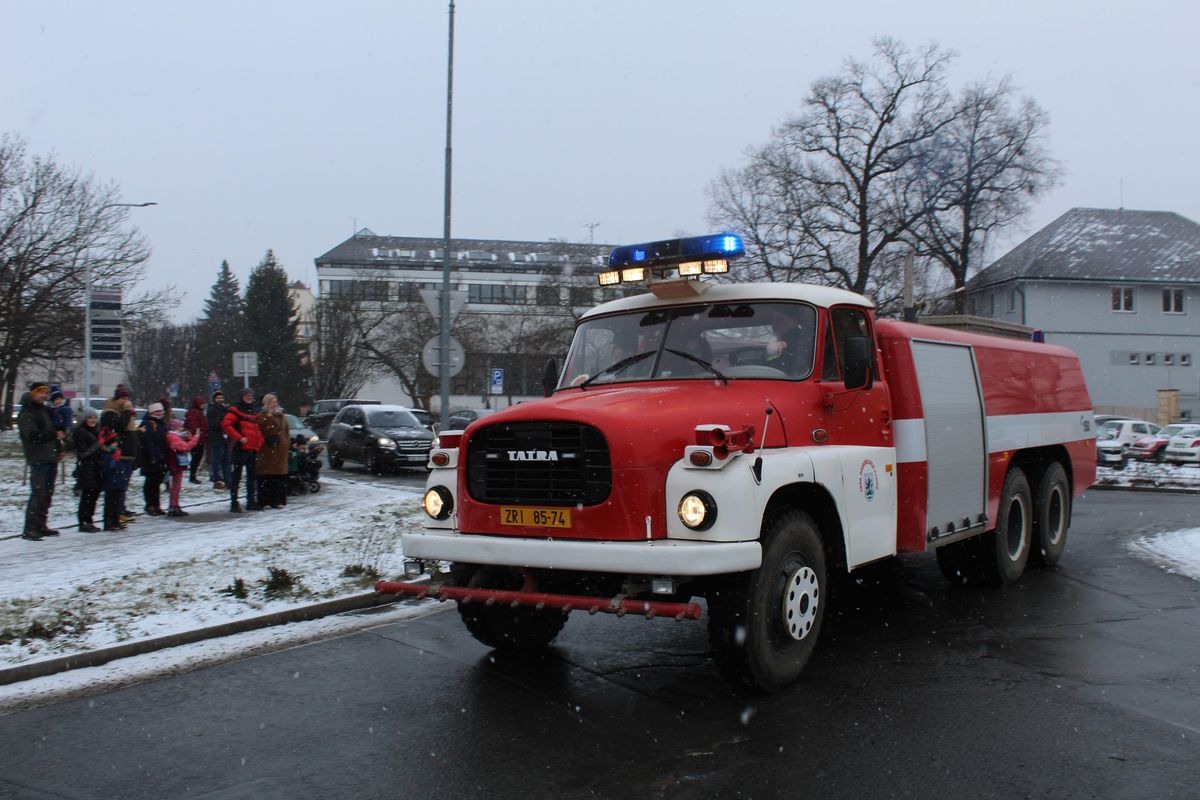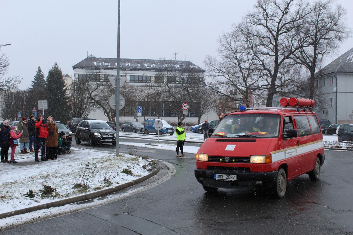 Je Silvestr dopoledne a cestou do centra se začínají na chodnících zahušťovat chodci. Právě mířím k velkoryse nově zrekonstruovanému Hotelu Perk, kolem něj má přijet kolona hasičských vozů z Rapotína na Hlavní třídu. U kruhového objezdu u hudebky stojí hasiči a dívka ze Securitas. Trochu se poptávám, kolik bude vozů, kde právě jsou, a tak dál. Dívka je milá a trochu smutně prohlásí: No, my jsme na každé křižovatce dva, jen já jsem tady sama.