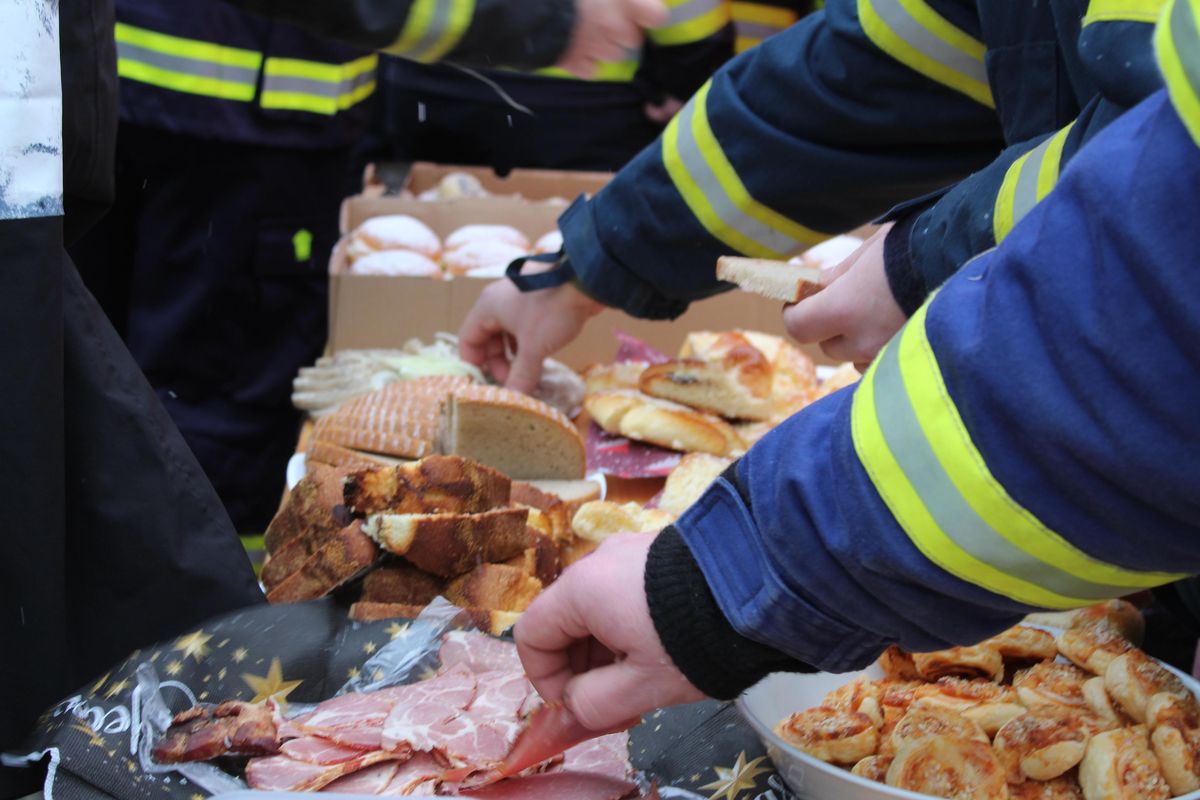 Takového dobroty měli hasiči k dispozici od štědrých dárců. Nechybělo pití na zahřátí i dobrou náladu.
