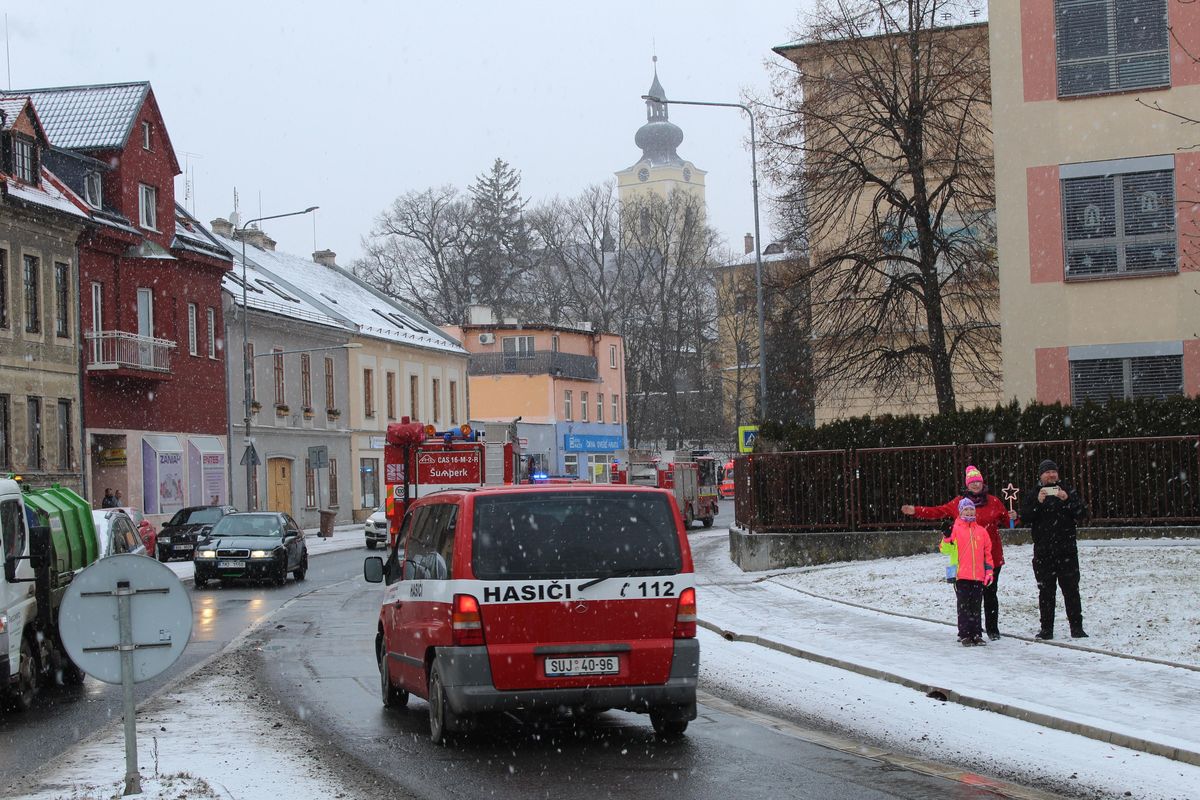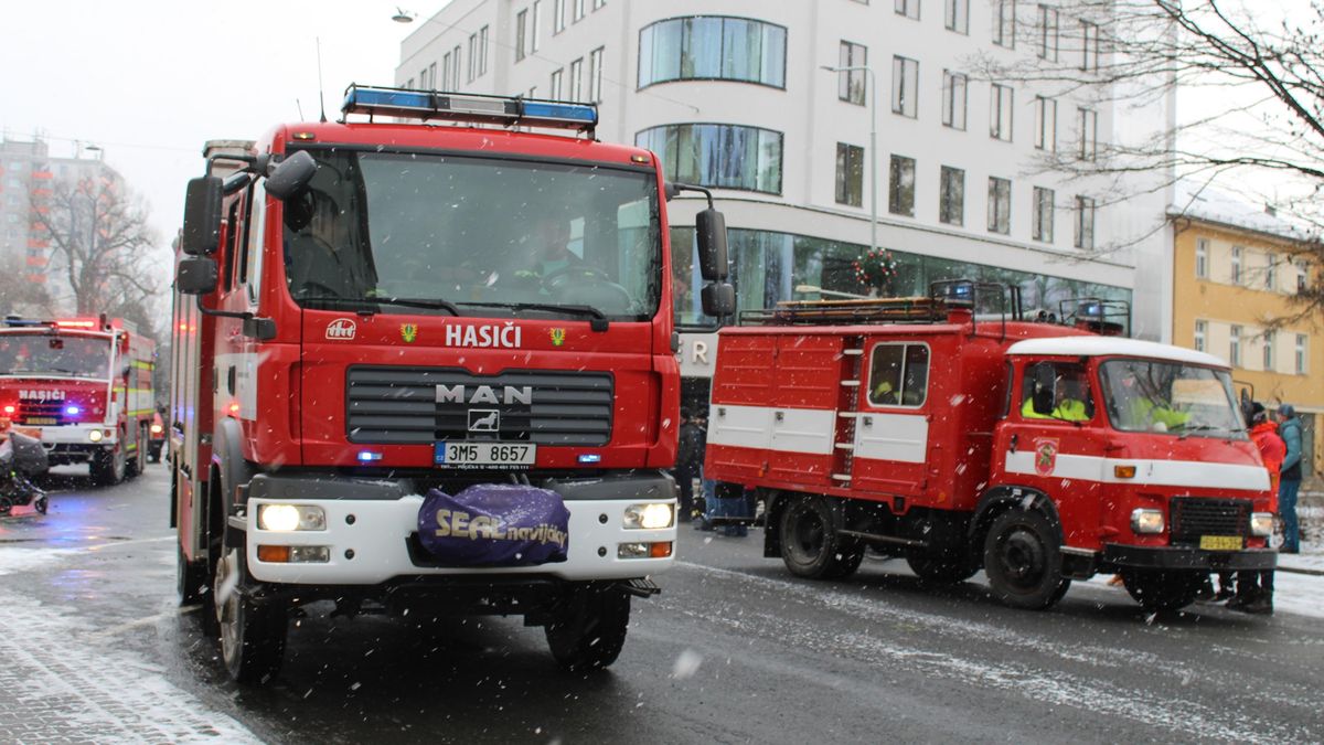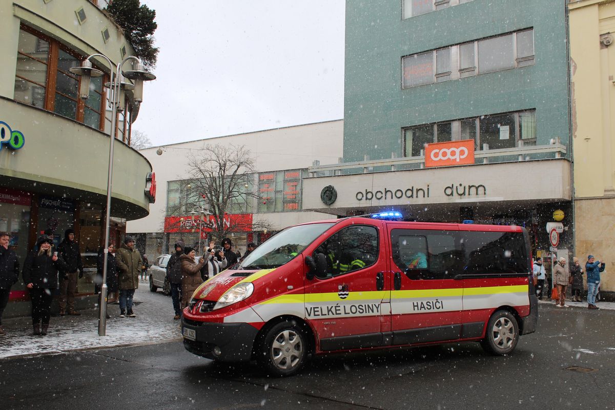 Konečně, hasičské vozy je nejprve slyšet houkat, pak konečně přijíždí na kruhový objezd u vily kdysi patřící známé rodině Primavesi, jejich slavná bývalá vila v Olomouci přitahuje davy turistů.