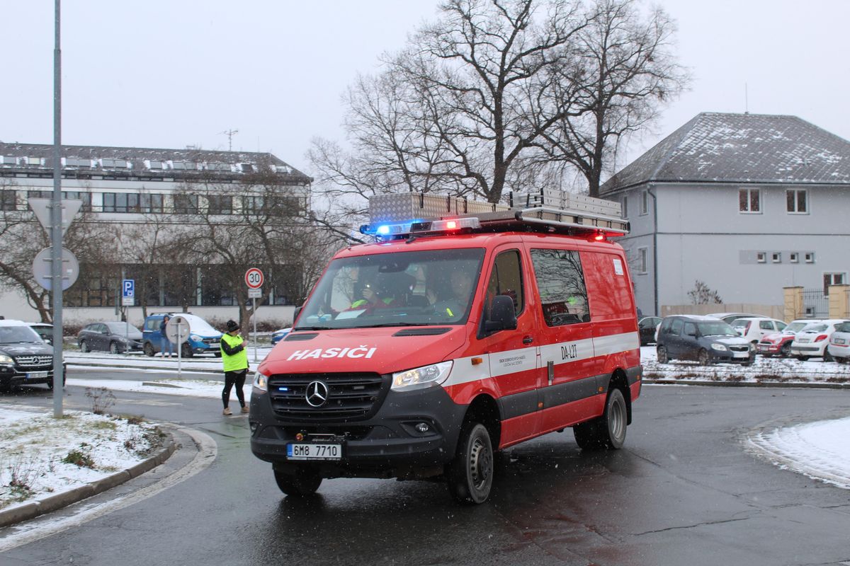 Na fotografii je hasičské vozidlo Mercedes-Benz Sprinter, zde dodávka Sprinter upravená pro potřeby hasičů jako dopravní automobil nebo technické vozidlo. Má typický tvar světlometů a karoserie, výstražná modro-červená světla, a hasičskou nástavbu a střešní vybavení (žebřík, boxy).
