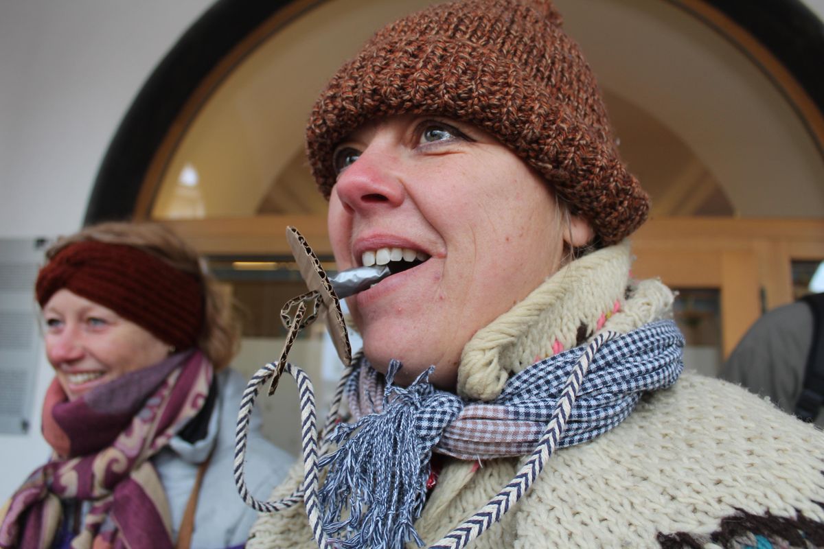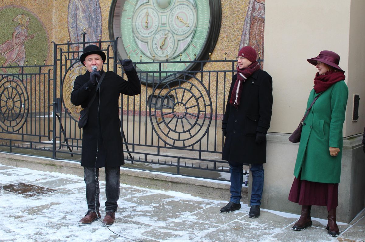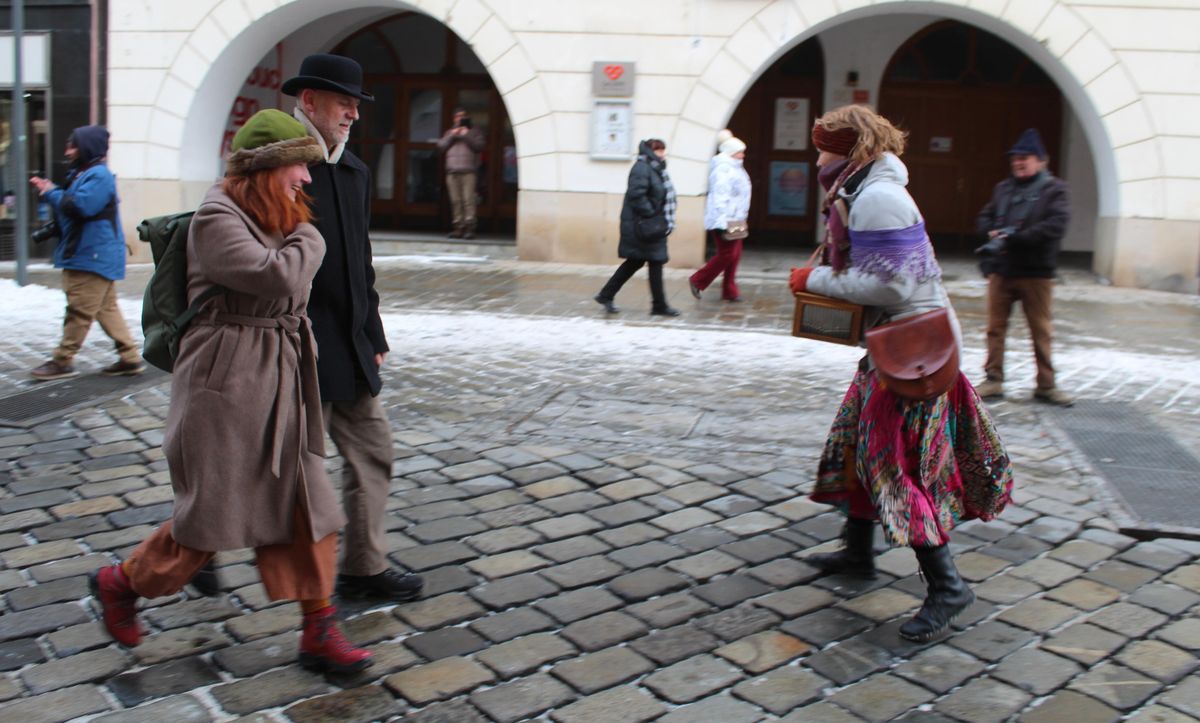Paní Karolina slavnostně zahajuje třetí ročník švihlého pochodu městem.