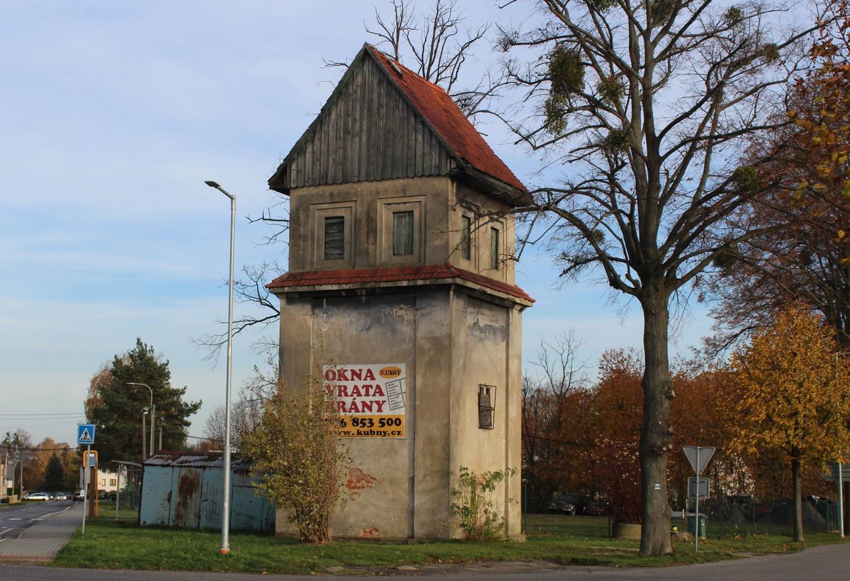 Na fotografii je bývalá vodárenská věž naproti továrny. Obec se snaží o její smysluplné využití, což se jí zatím nedaří.