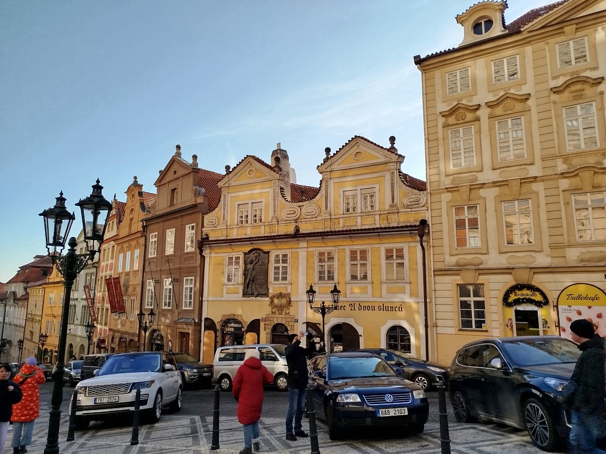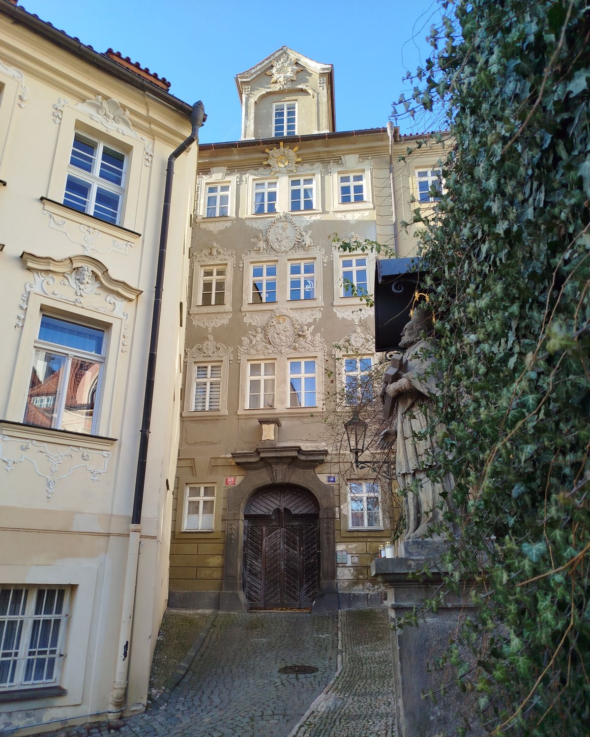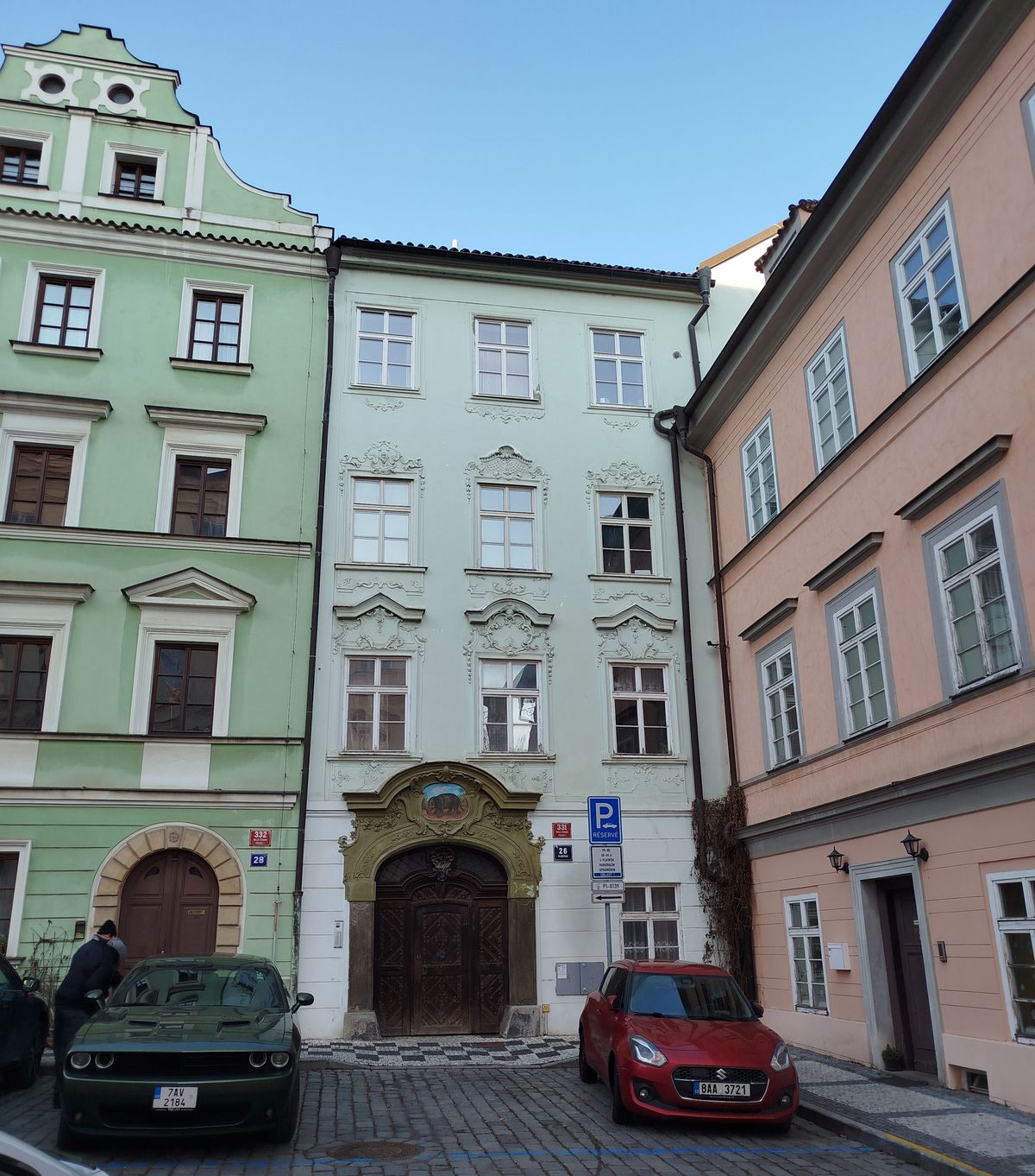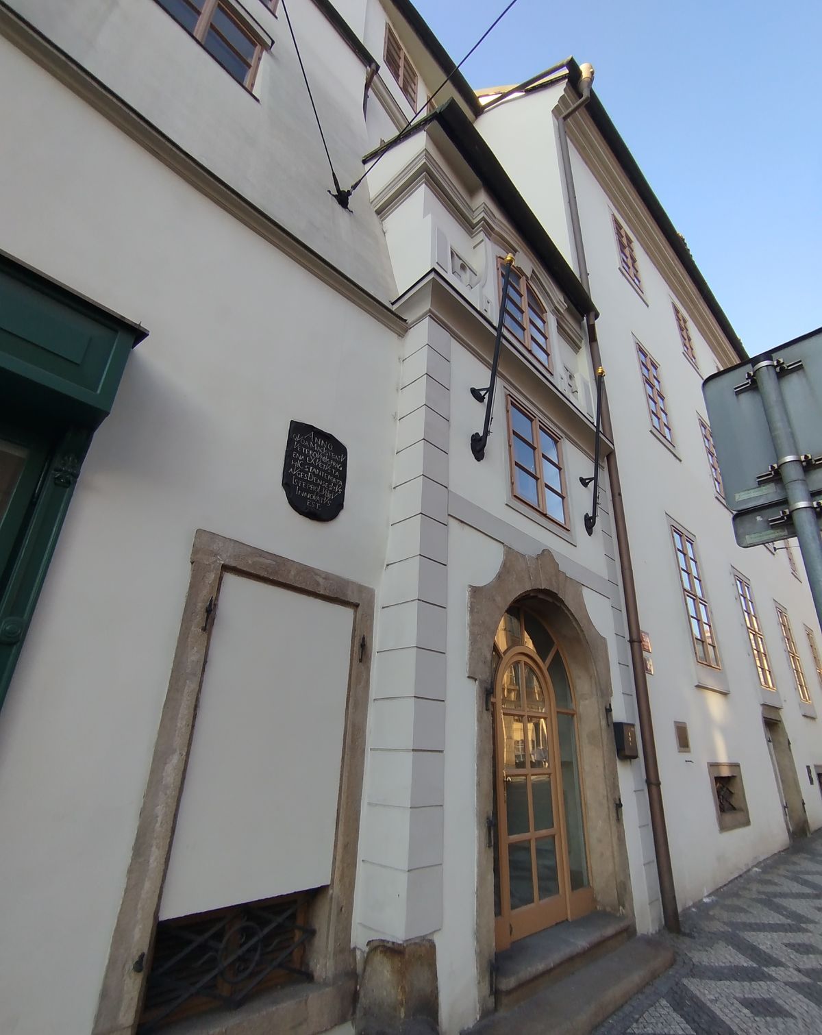 Vlevo stojí dům U Osla v kolébce spjatý s magistrem Edwardem Kelleym, slavným alchymistou na dvoře císaře Rudolfa II.